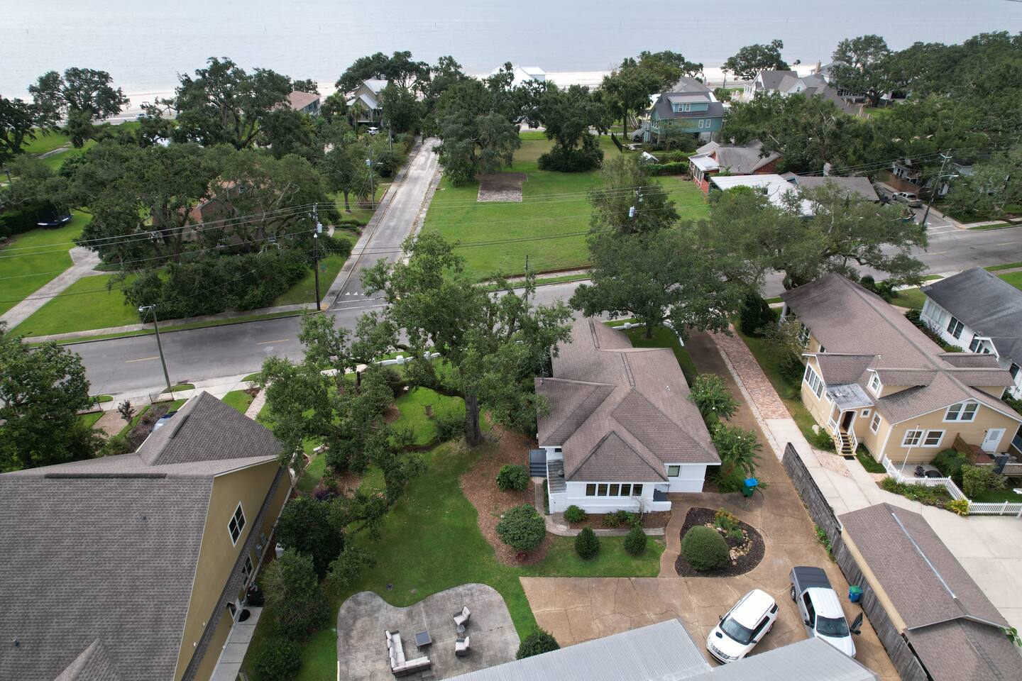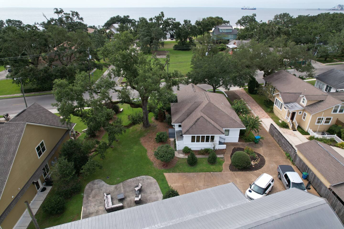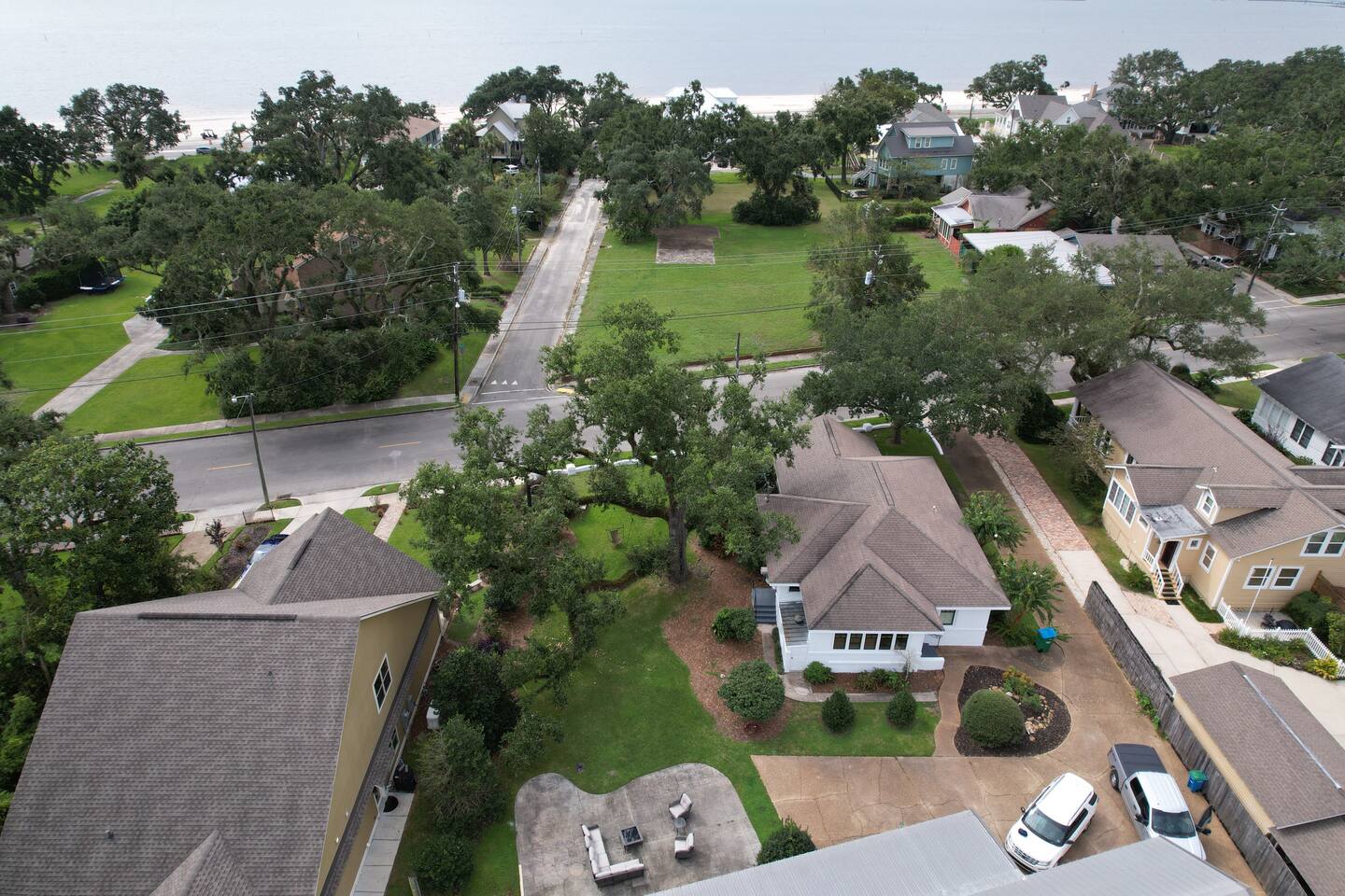 This is one of the nicest neighborhoods in Gulfport. A quiet area close to everything. The area is within a 2-3 min drive to downtown restaurants, shopping, and nightlife, the aquarium, and a short one block walk down to the beach. You can actually see the water from the main house living room and front porch.