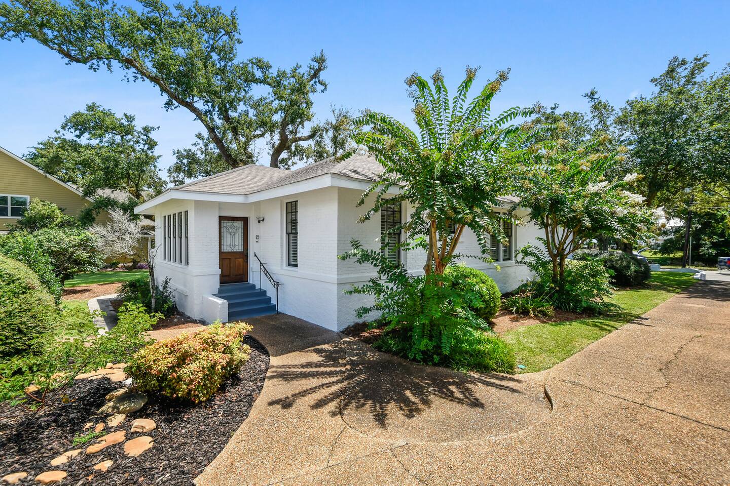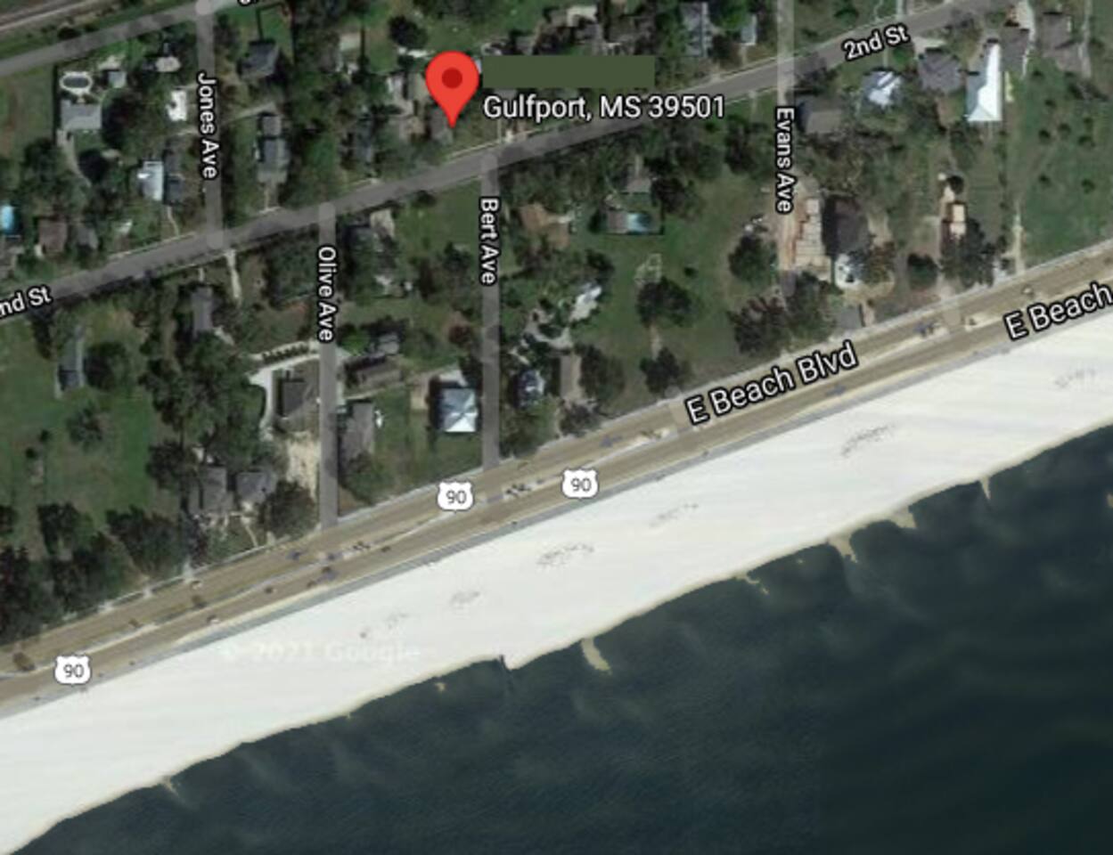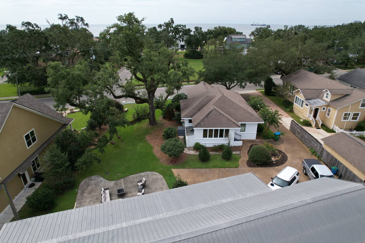 This is one of the nicest neighborhoods in Gulfport. A quiet area close to everything. The area is within a 2-3 min drive to downtown restaurants, shopping, and nightlife, the aquarium, and a short one block walk down to the beach. You can actually see the water from the main house living room and front porch.