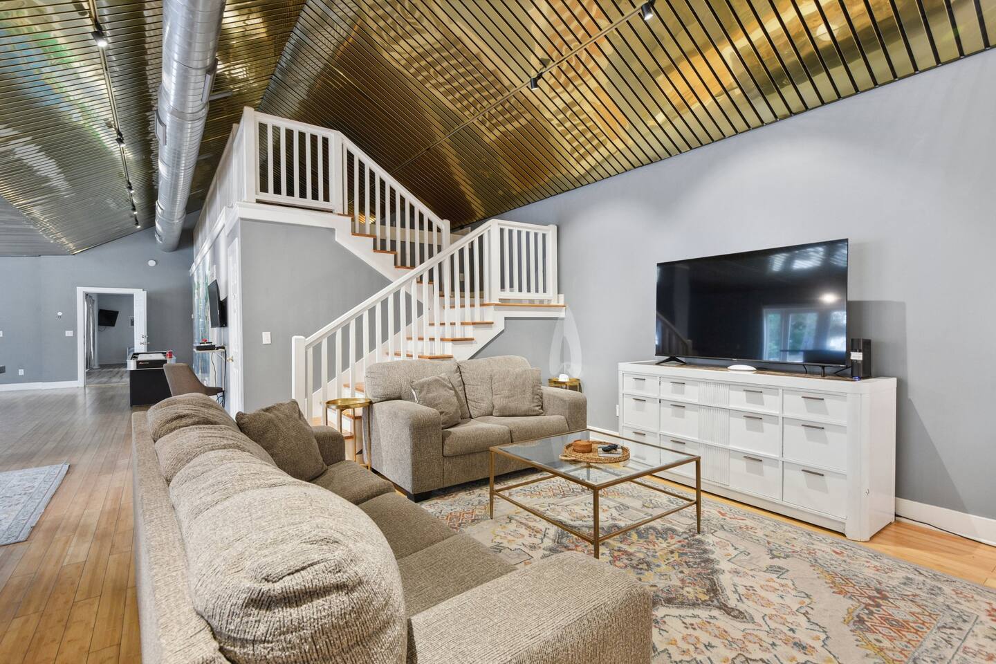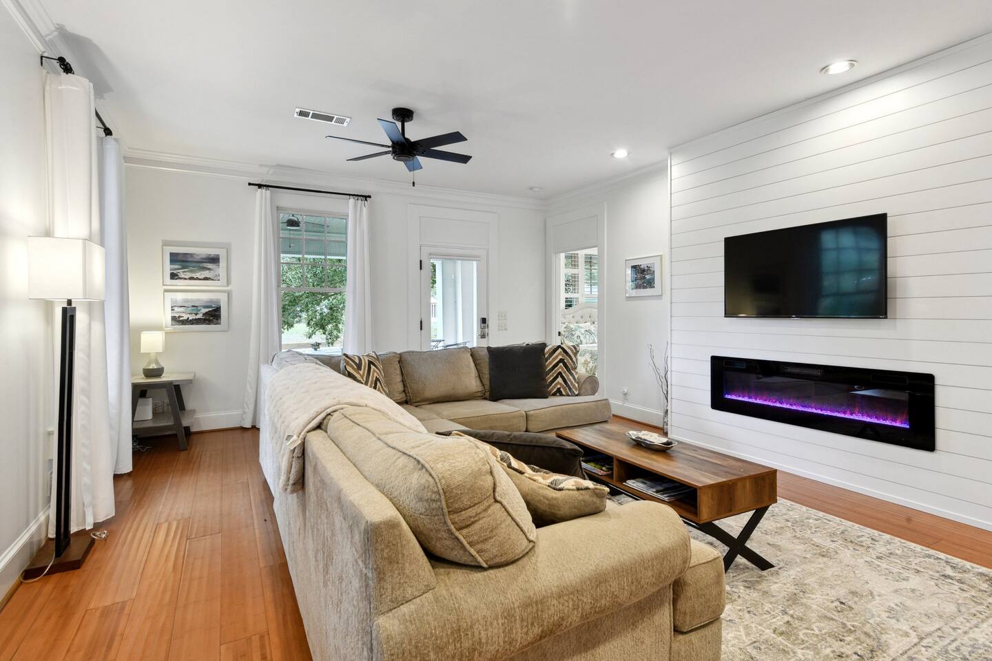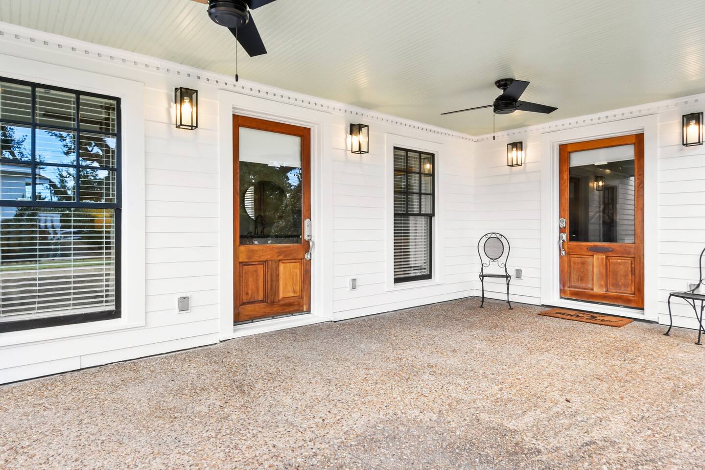 Guest can access the main house from the front door. The main house is accessed by its front door. Both have smart locks. There is a 1 car garage that may be available.