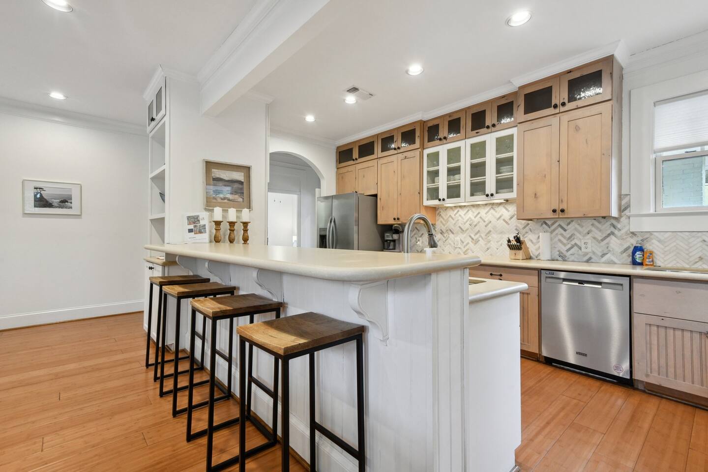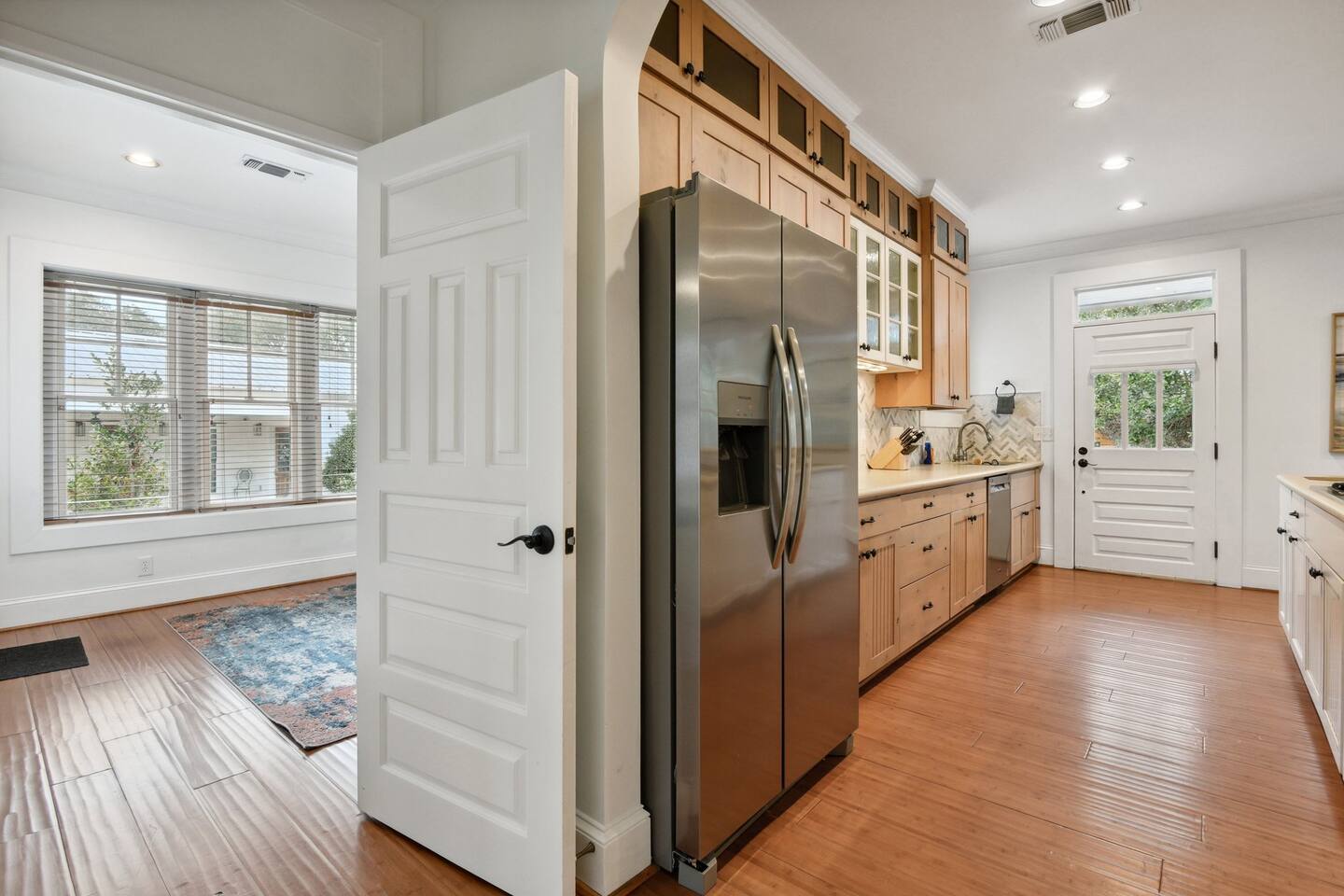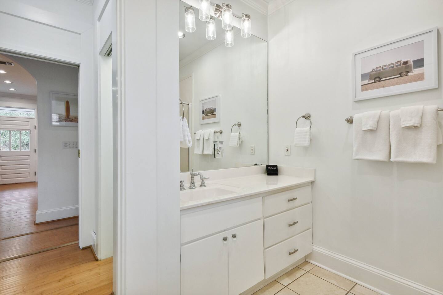There is a keypad on the front door and one on the guest house door where the “Yay You’re Here” welcome mat is located. You may unload your car wherever you see fit. There is street parking and you can easily pull behind the house, on the left side of the guest house or in the driveway to park. Please do not ever obstruct the neighbors adjoining driveway for any reason. Thanks in advance!