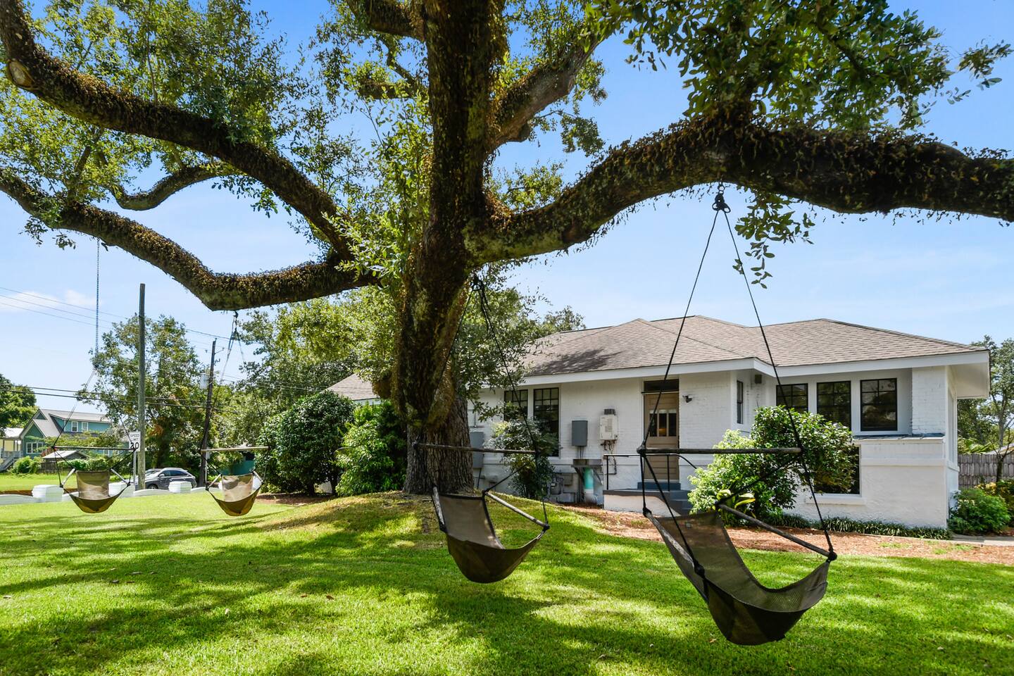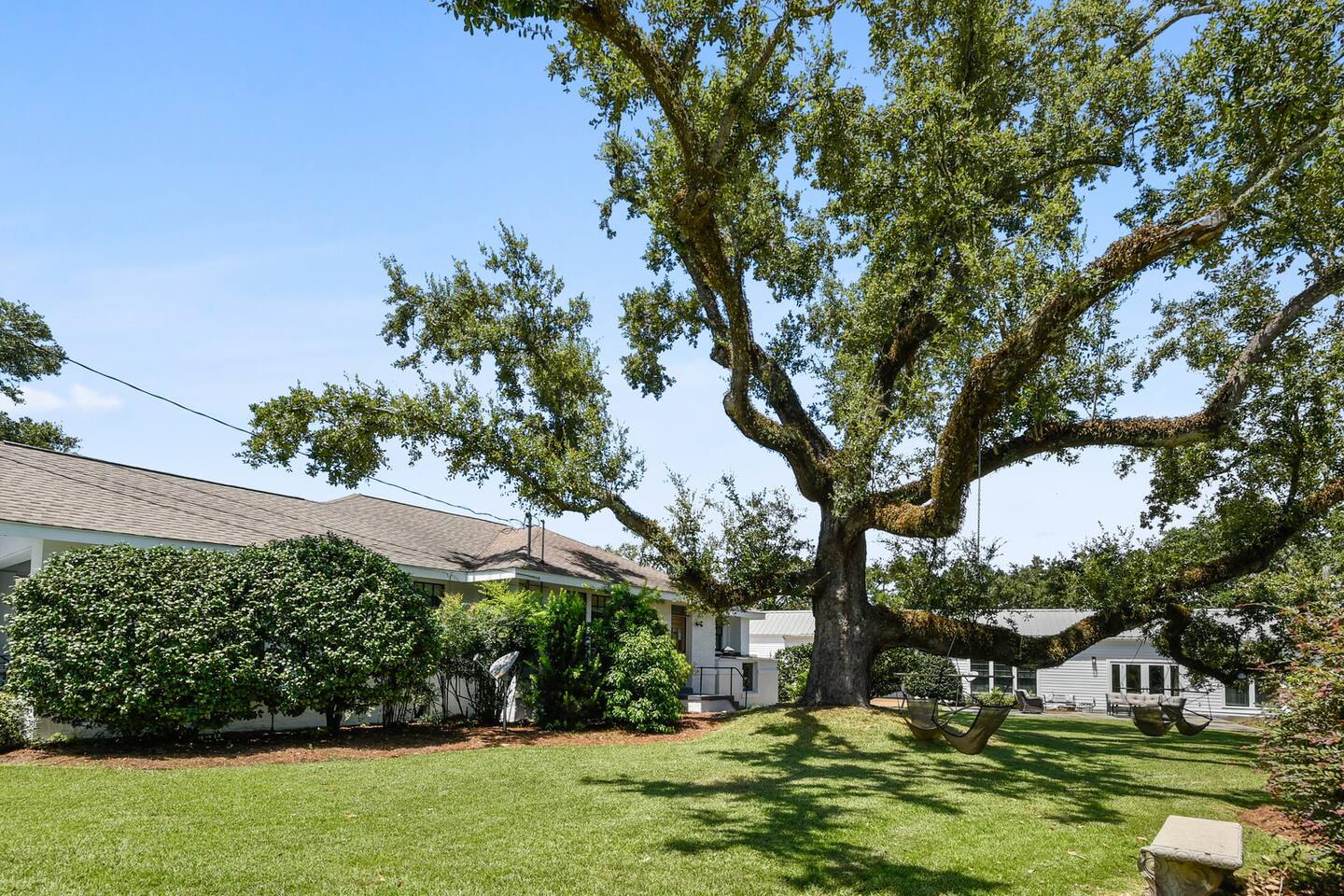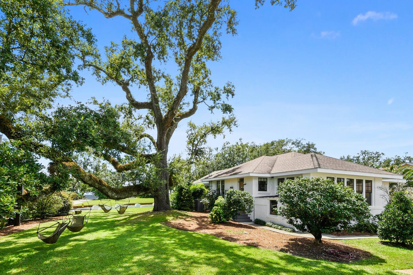 Main House - The main house offers 3 bedrooms (king beds), 2 baths (both en-suite for 2 of the bedrooms) and shareable to BR 3 from separate hallway entry (1515 sq ft). The main house has a gas range along with quality cookware and cutlery. Tv's are located in all bedrooms and the living room. There is access to Sling TV, Netflix and Hulu. The front porch has a swing and seating. Guest House - The guest house is 1983 sq feet w/ ample space to entertain w/ a large kitchen, outdoor, & open bar area. 1 bedroom with a king bed and twin trundles (2 mattresses) & 2 full baths . There's a pull out queen stowed in the living room and a loft space for the kids to play. There are also 2 twin air mattresses available. There is a large loft area with 2 6 foot bean bags and a TV. The loft area does a have low ceiling. Outdoors - The outdoor area contains an enormous oak tree in the side yard with 4 swings on it. There is also plenty of outdoor seating and space for those that want to hangout and play outside. Guest may use all spaces in the main house aside from the crawl space access. In the guest house, everything is available aside from the locked owners closet Downtown Gulfport- 1.6 miles Fishbone Alley - 1.9 miles The Mississippi Aquarium - 1.3 miles Gulfport Marina - 1.3 miles Chandeleur Island Brewing Company- 1.9 miles away Island View Casino Resort- 2.3 miles Pop’s Brothers Popsicles (as seen on CNBC’s Billion Dollar Buyer)- 1.9 miles Moses Fishing Pier – 1.6 miles Owen T. Palmer Park- 0.4 miles Jones Park (Ship Island Ferry) is 1.2 miles Gulfport airport- 4.8 miles Altitude Trampoline Park- 5.1 miles Gulf Islands Waterpark 7.9 miles Institute for Marine Mammal Studies (IMMS)- 6.7 miles Biloxi Coliseum - 6 miles Naval Construction Battalion - 3 miles Keesler Air Force Base - 10 miles Hard Rock Casino - 11 miles Beau Rivage Casino - 11 miles Margaritaville - 12 Miles Long Beach, MS- 5 miles Bay Saint Louis, MS- 17 miles Biloxi, MS- 5 miles Ocean Springs, MS – 15 miles New Orleans, LA- 80-90 minutes Mobile, AL- 70 minutes