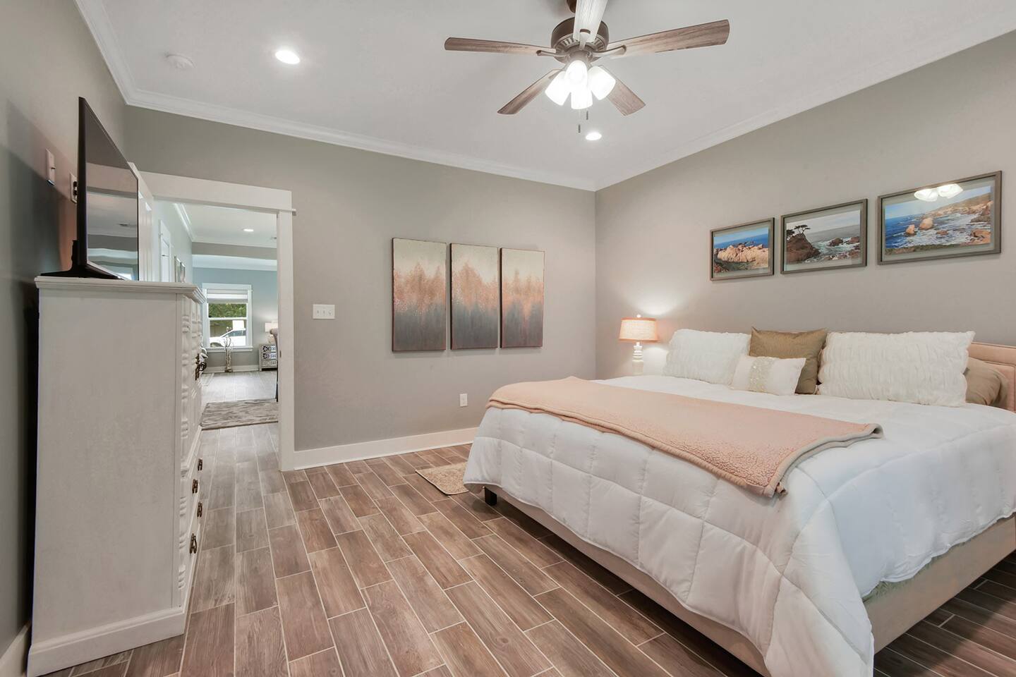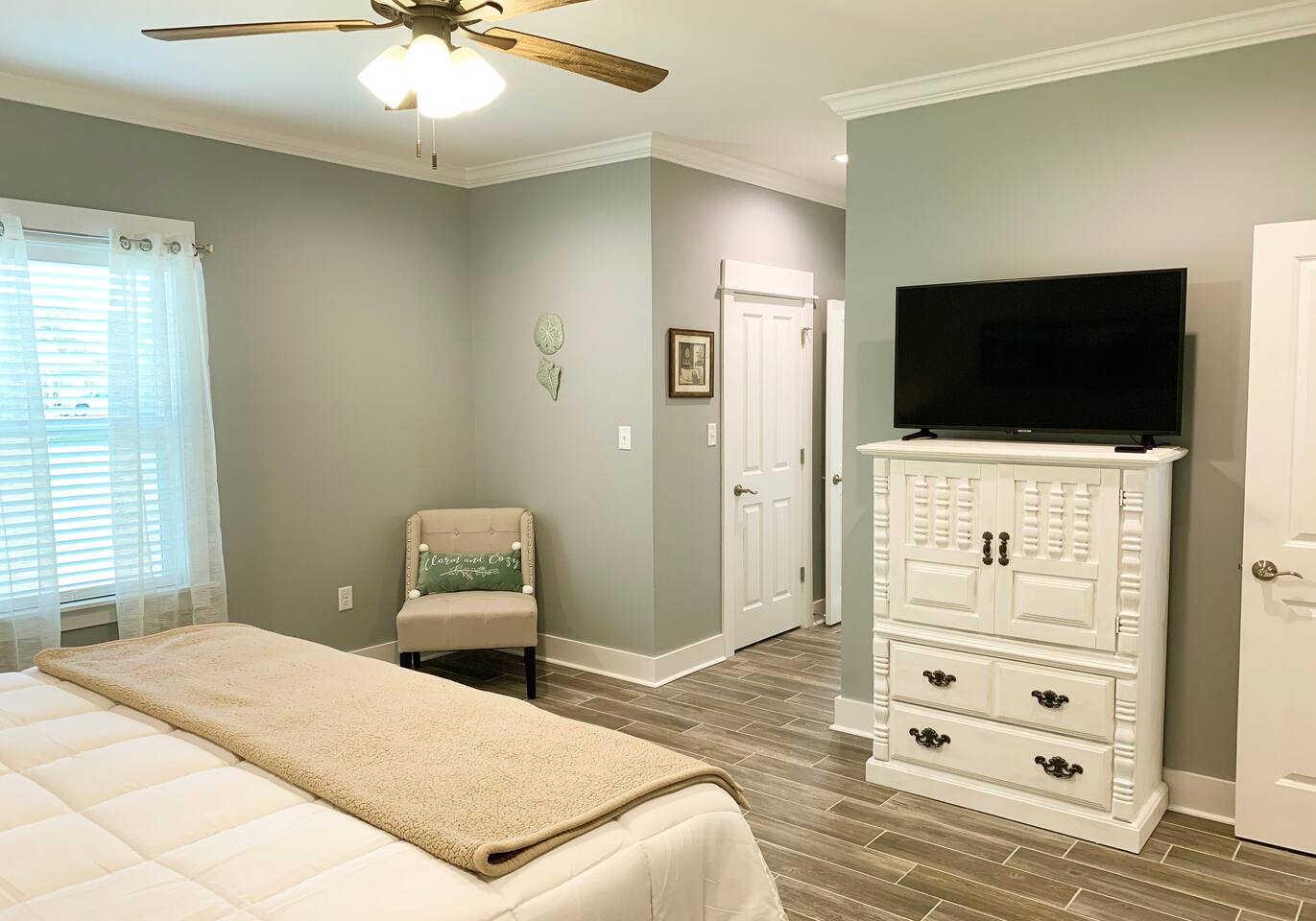New construction home, with 2 full bedrooms and 2 full baths, built In late 2019. Our space is set up perfectly for guests with a King bed in the master, a queen bed in the additional bedroom, large flat screen tv's in every room, board games, wifi, SlingTv, Netflix, additional towels, beach towels, private driveway parking for up to 2 cars, and a deluxe tall Queen sized air mattress with built in headboard to accommodate 2 guests in the common space. There are 2 security cameras on the entryways of the cottage. *PLEASE SEE OUR OTHER LISTINGS ASSOCIATED WITH MANDY IF THIS ONE IS NOT AVAILABLE*