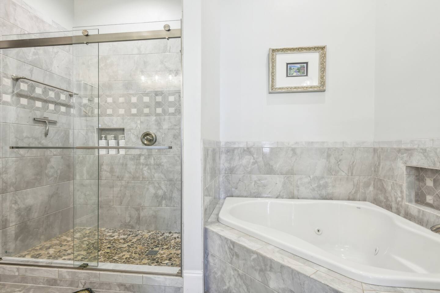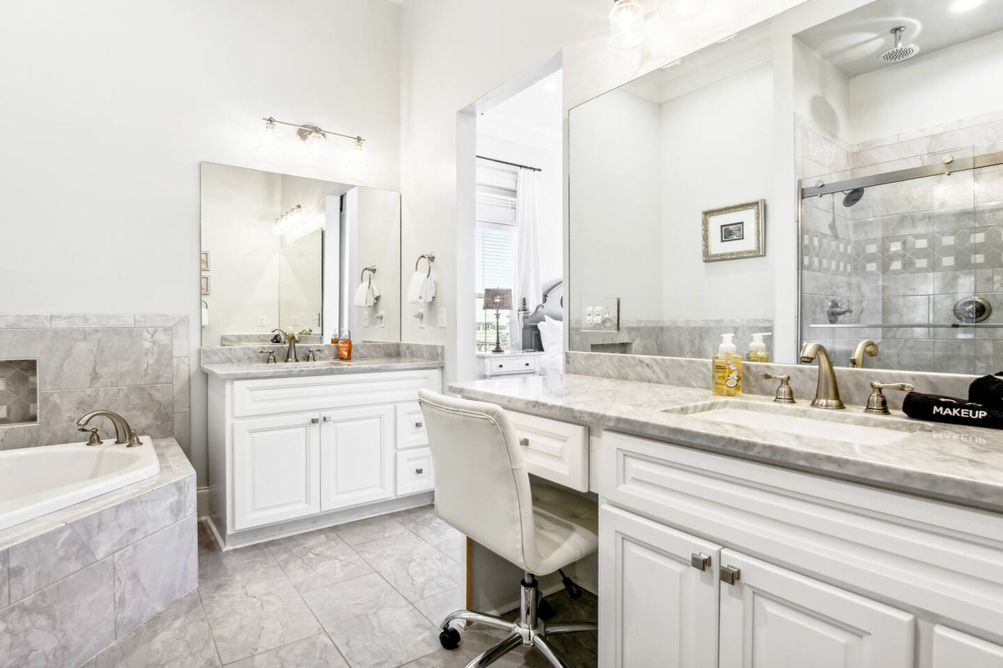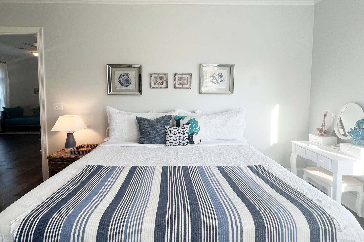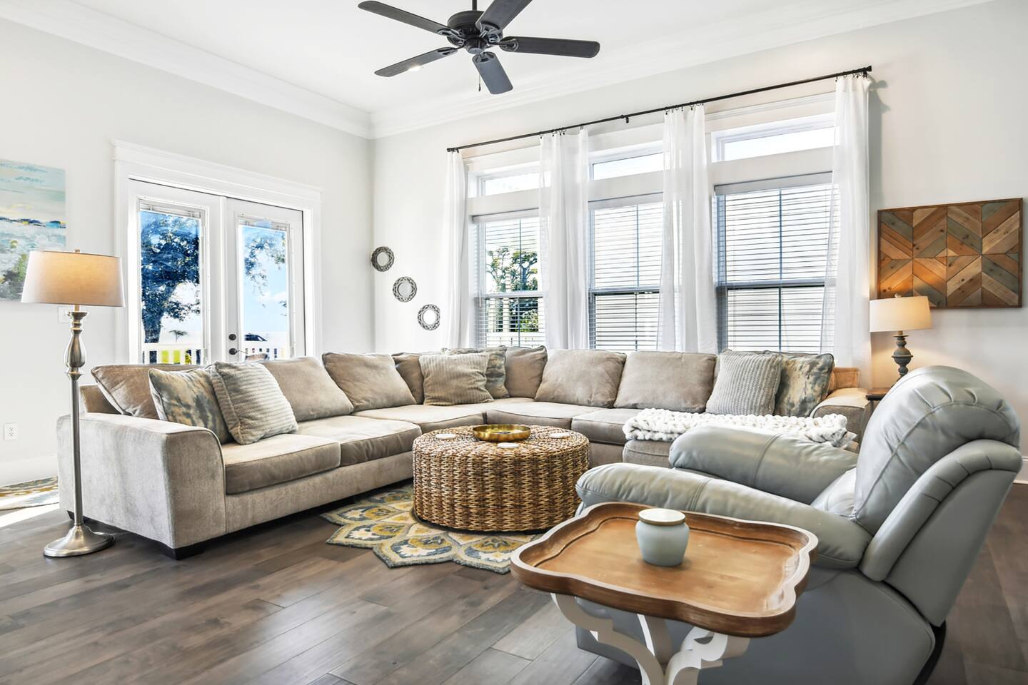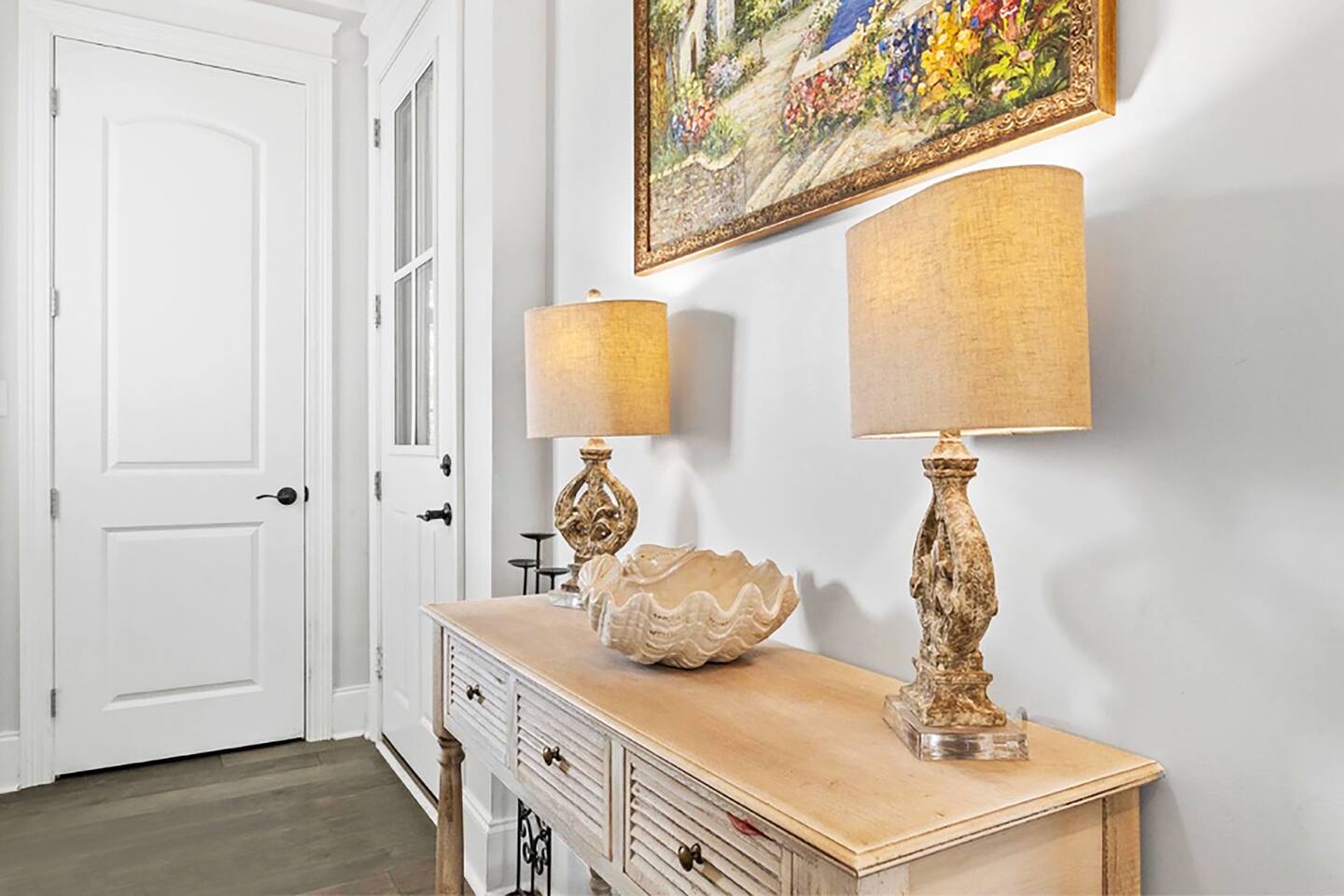 You’ll enter the home through garage door code (garage door remote mounted on left side of garage door) and you’ll have a unique code to access the interior of the home through the garage entry. From there you’ll find 2 garage door remotes you may use during your stay in the far left drawer of the piece of furniture in the hallway right outside of the laundry area with the 2 lamps. Please make sure to return these before you leave, as there will be a $150 charge a piece for having to replace these on short notice.