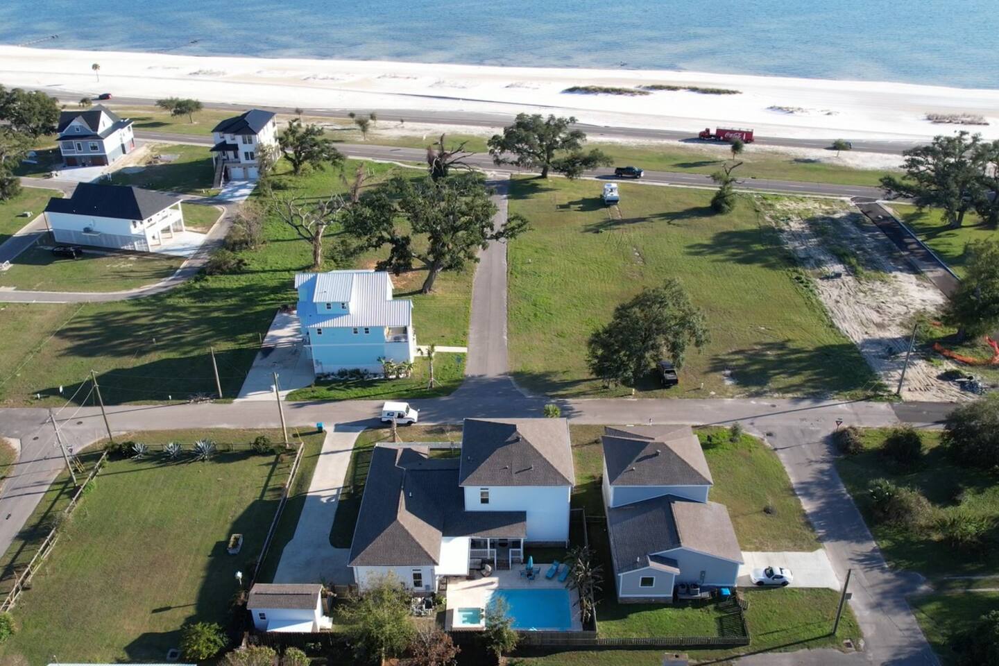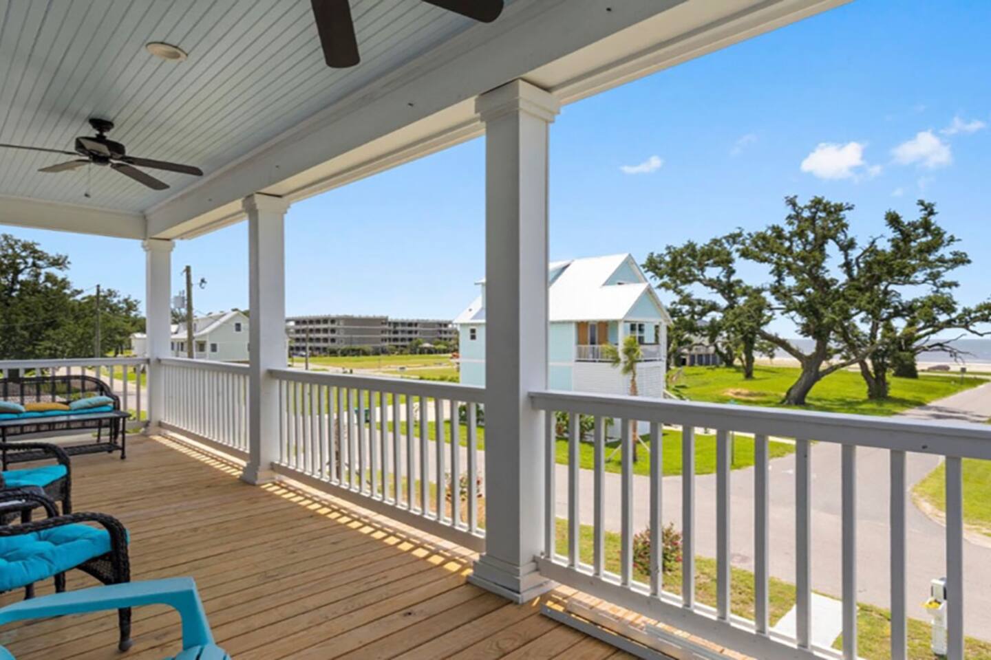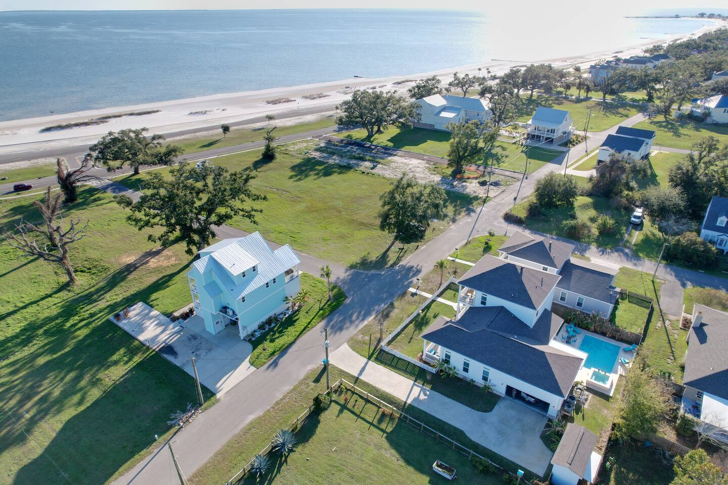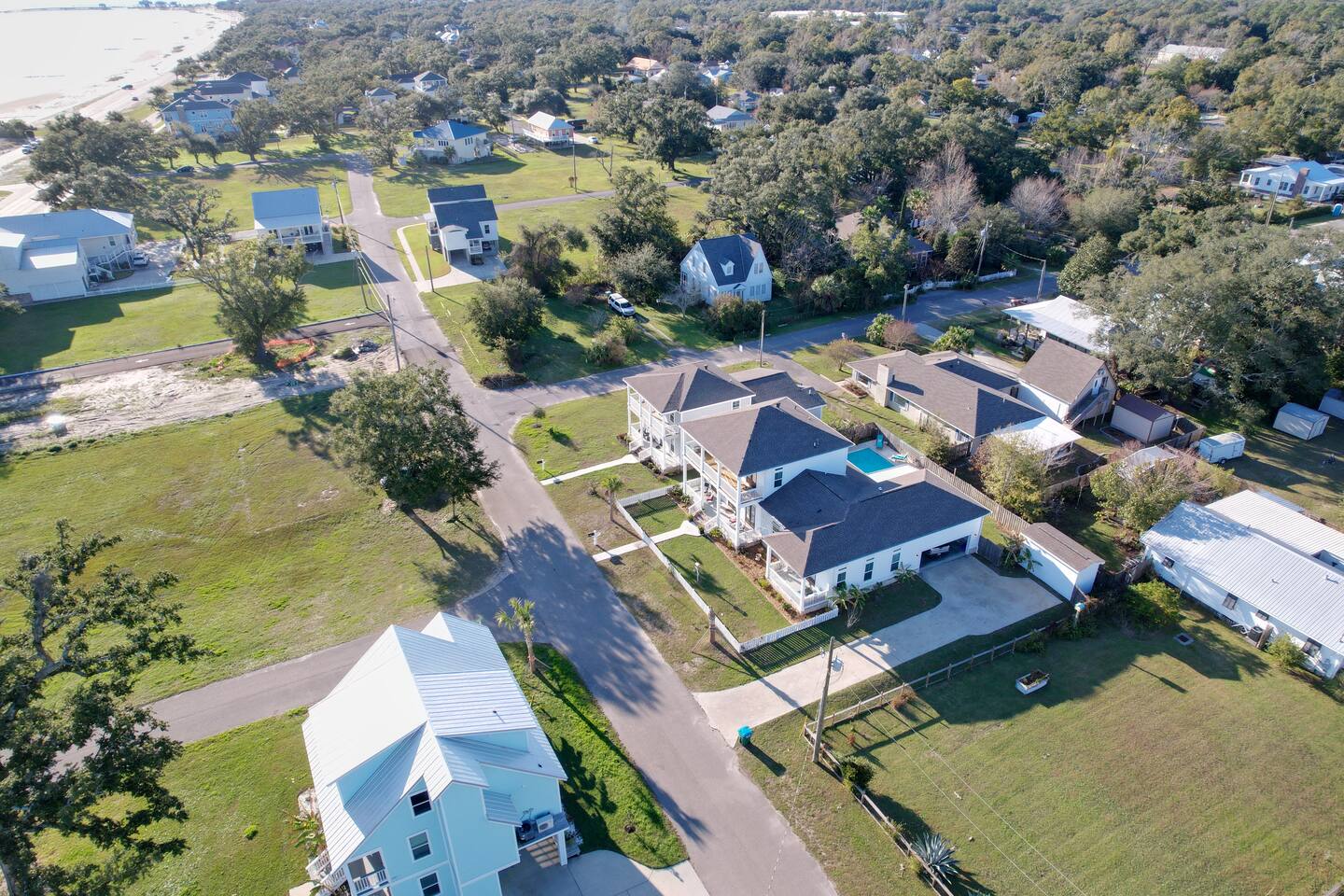 Gorgeous area with oak trees and water views, tons of new construction and in a lovely residential area. It’s a close walk down to the beach and a very short drive to downtown/restaurants/activities (2-3 minutes) to enjoy restaurants like Chimneys, Salute’, Rack House, Half Shell, and Shaggy’s!