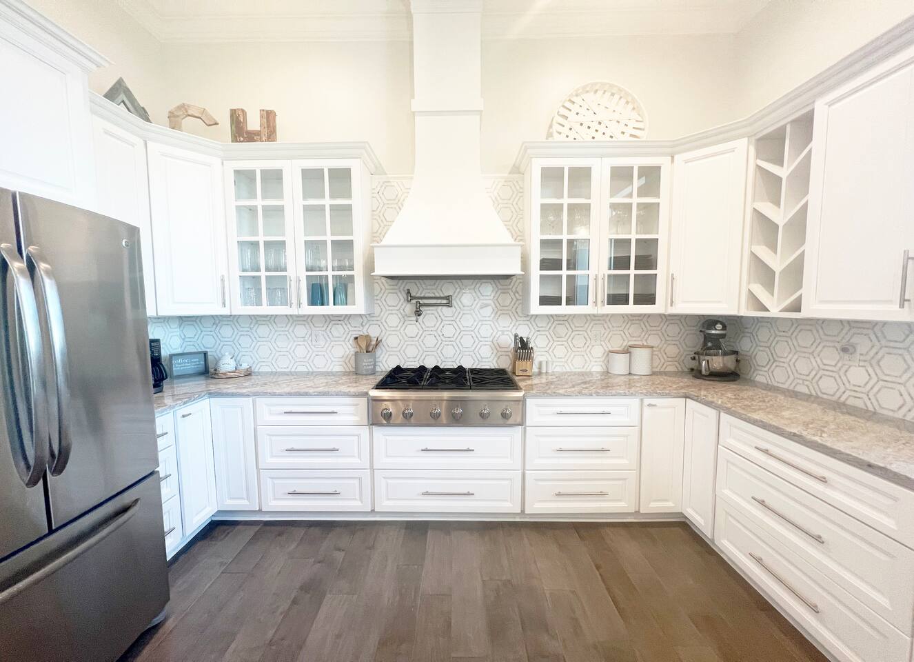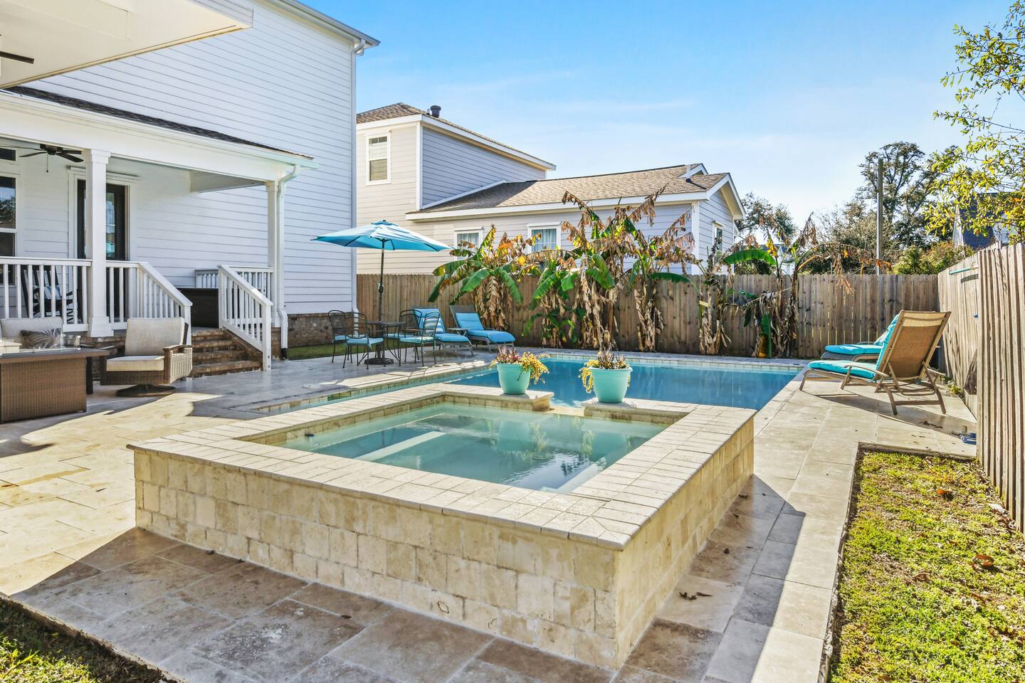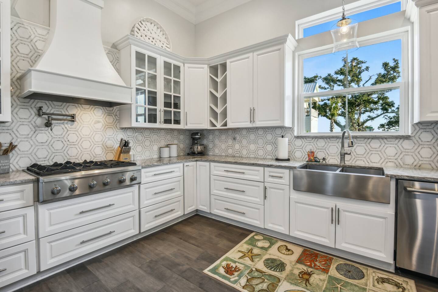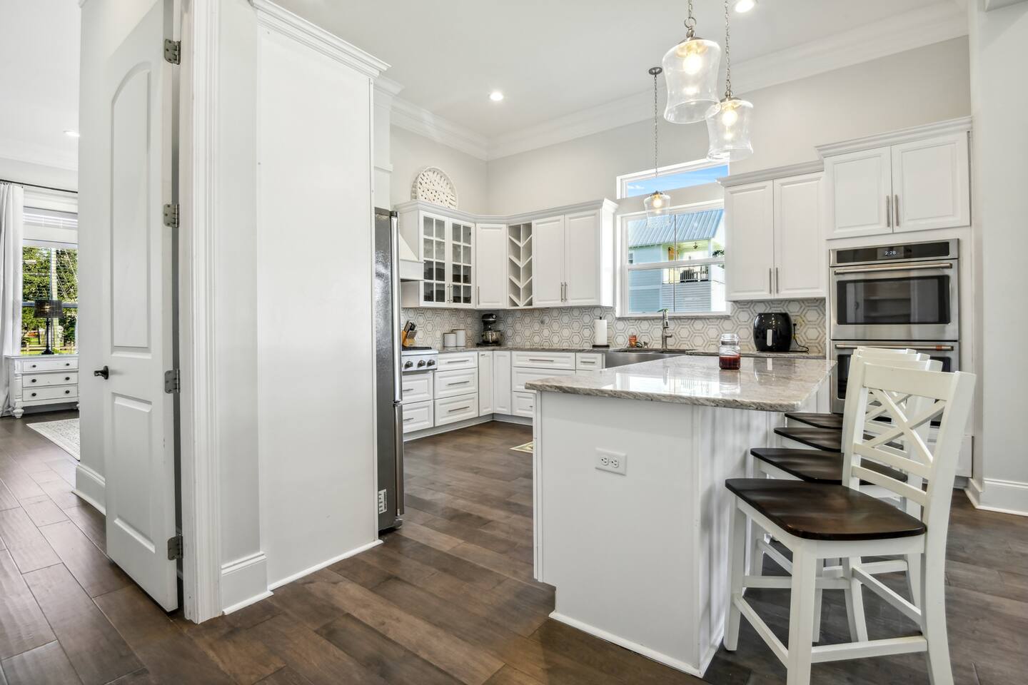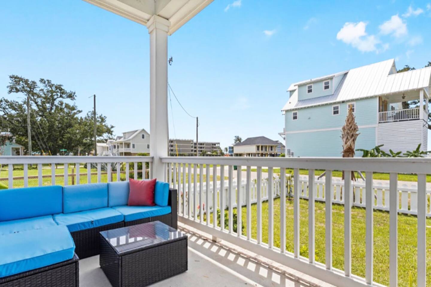 Gorgeous area with oak trees and water views, tons of new construction and in a lovely residential area. It’s a close walk down to the beach and a very short drive to downtown/restaurants/activities (2-3 minutes) to enjoy restaurants like Chimneys, Salute’, Rack House, Half Shell, and Shaggy’s!