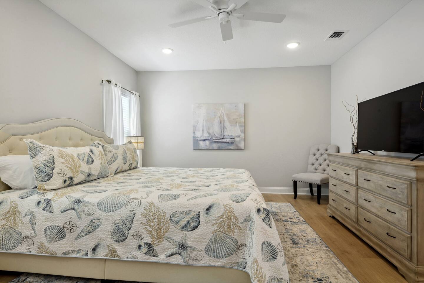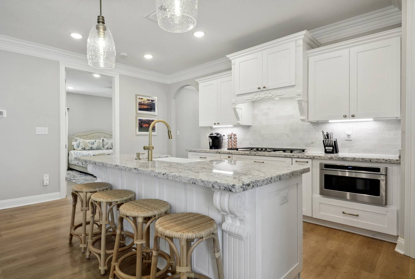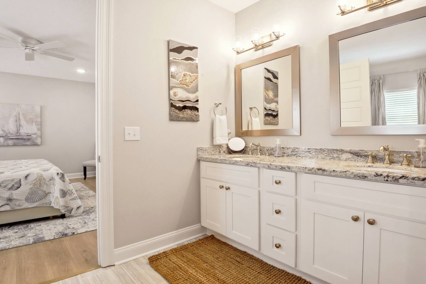 This beautiful home features a split plan with 2 bedrooms downstairs and 2 bedrooms upstairs. King room has a 50” television, en-suite bath with a large soaking tub, large shower, beautiful stone counters and finishes with double sinks, and a huge walk in closet. The bedroom at the front of the home features a queen bed with a television as well and a bathroom just beside it which is also usable from living room/kitchen. There is a full size Murphy bed that pulls down in the living room as well! Just move one small dining room chair and it will fully extend! The living room and kitchen are a beautiful space to entertain with absolutely breathtaking finishes and a large table for dining. Upstairs consists of 2 bedrooms and one full bathroom as well with another king room with a large walk in closet to the right and another queen bedroom to your left. Both have televisions for your viewing pleasure and guests staying in these rooms would share the upstairs bath (which is separate from both). There is a full laundry room as well with both washer and dryer along with a 2 car garage and garage door opener remotes for your convenience. Enjoy coastal breezes in the swing on the front, just steps from water views and beaches!! Or enjoy grilling in back in fenced in private area, also with lovely water views towards the back. Walks to the beach should be more convenient with the beach cart we have also provided with 4 beach chairs, an umbrella, a spike for driving the umbrella into the sand, and some other items like a football and a frisbee as well :) You can easily walk to the beach but there is also parking by the beach if you’d rather drive down. There are restaurants like Chimneys, Salute’, and Shaggy’s just one block away so feel free to walk down the sidewalk on Hwy 90 or the one on 2nd street to come in at the back/parking of the restaurant area. We have also provided an level 2 EV J1772 charger. If you have a Tesla, please bring your adapter. :)
