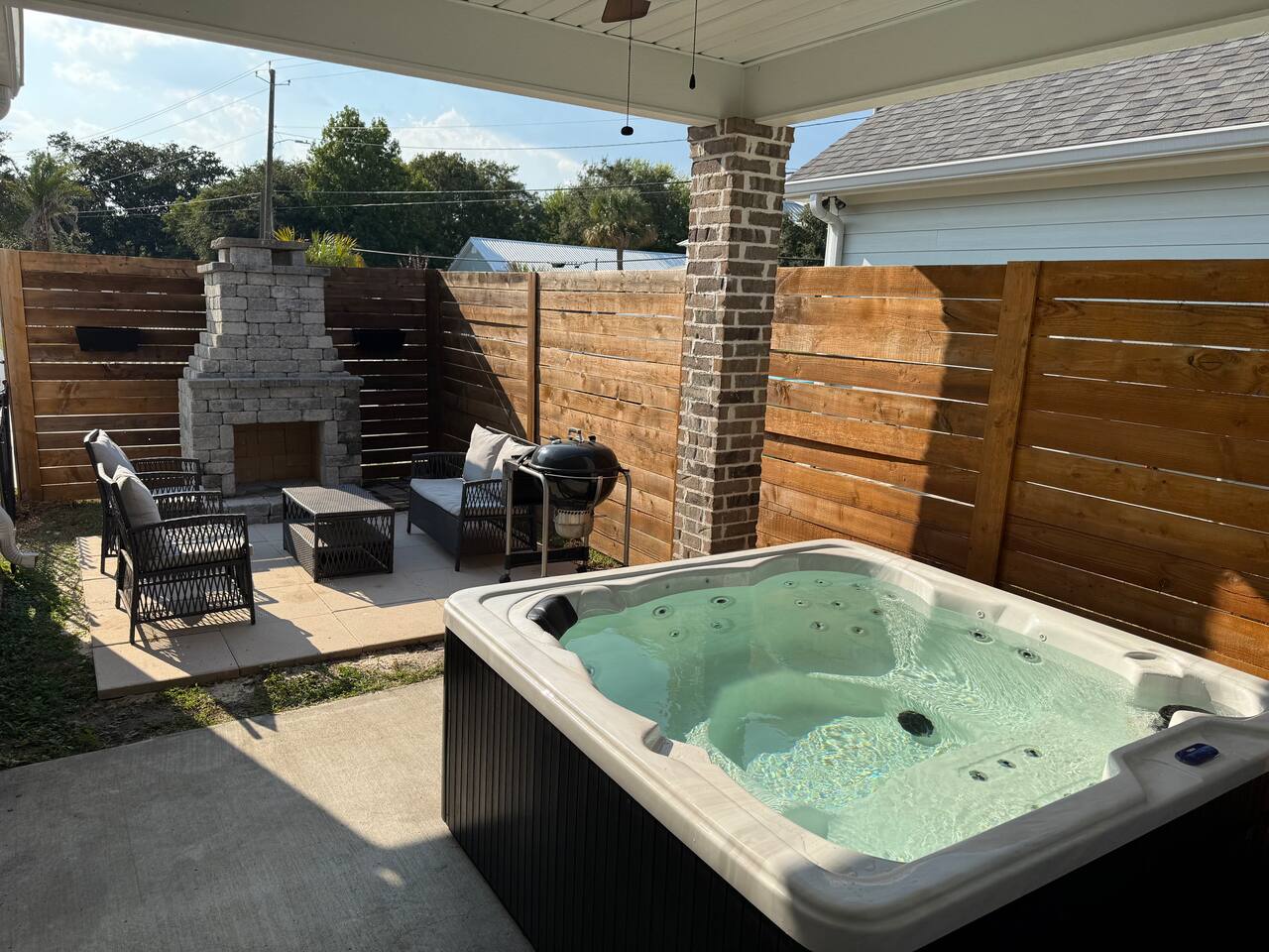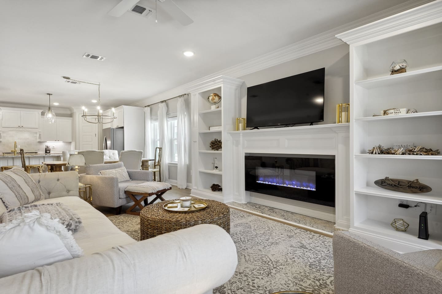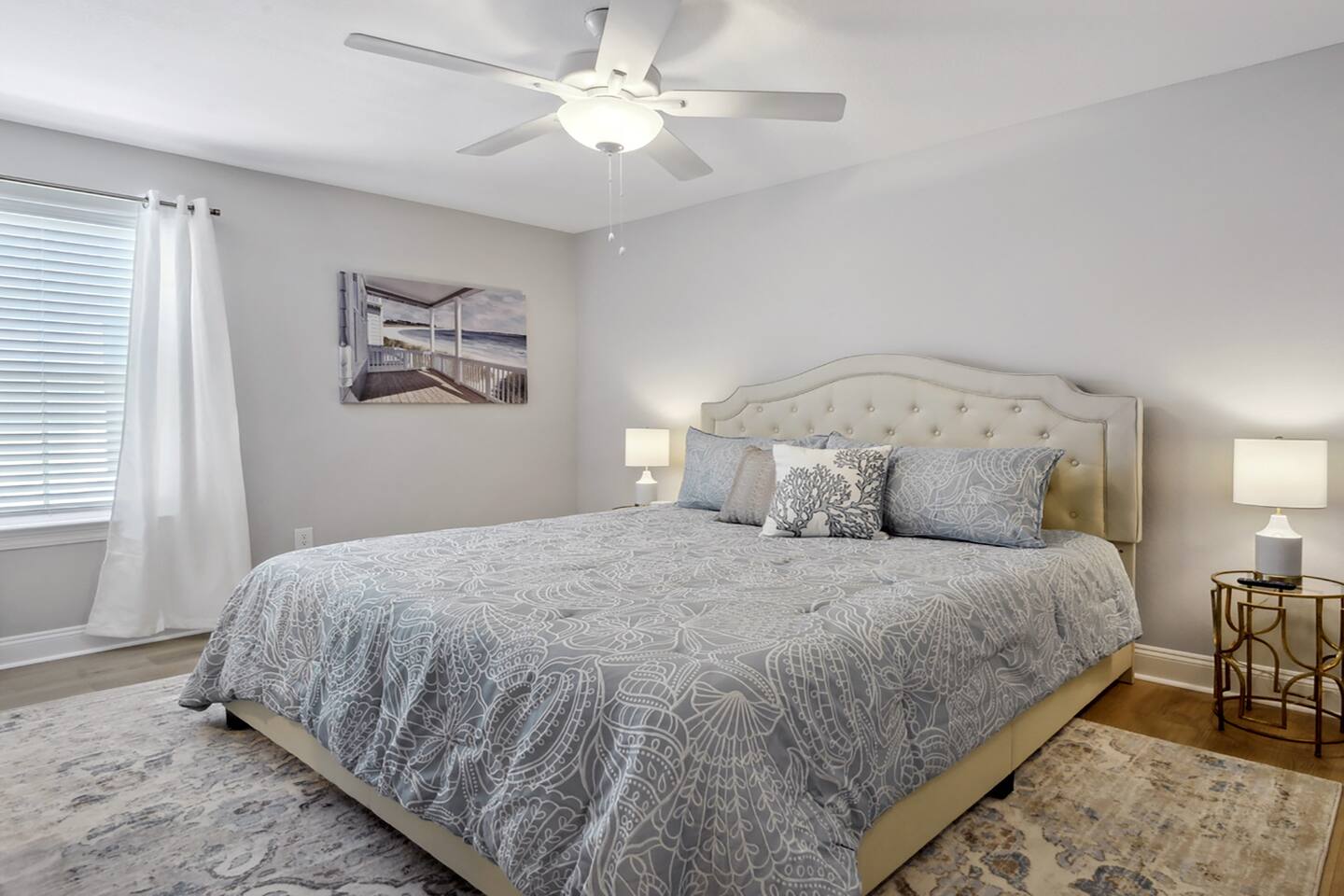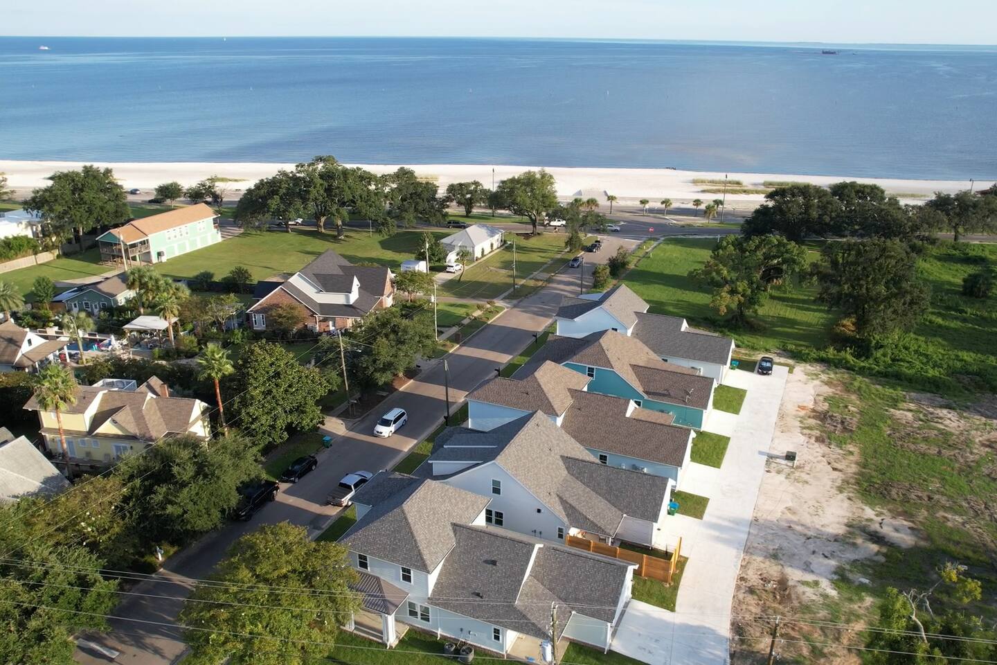 Enjoy a new construction home w/ beautiful finishes & an outdoor patio area 1 block from the beach and near downtown!! 2 King rooms & 2 Queen rooms along with a full size Murphy bed in living room area. Beach/Water views are just steps from the front door, also from the back yard, & walkable down sidewalks to the beach (just across Hwy 90) along with restaurants like Chimneys, Salute’, and Shaggy’s! 2 car garage and street parking available for up to 4 vehicles and an EV charger in the garage!