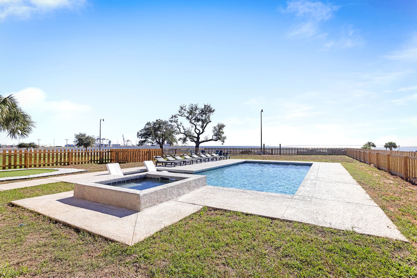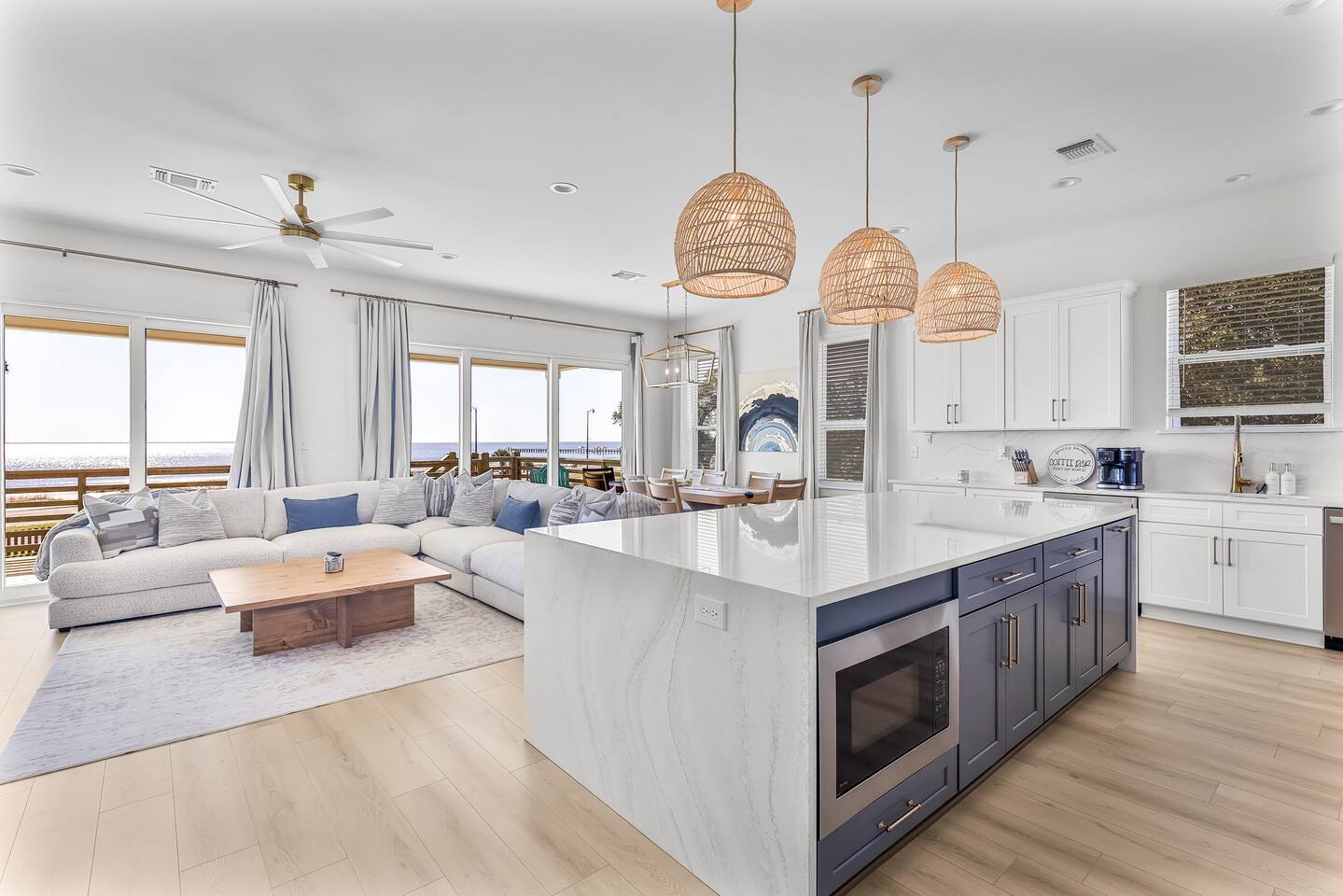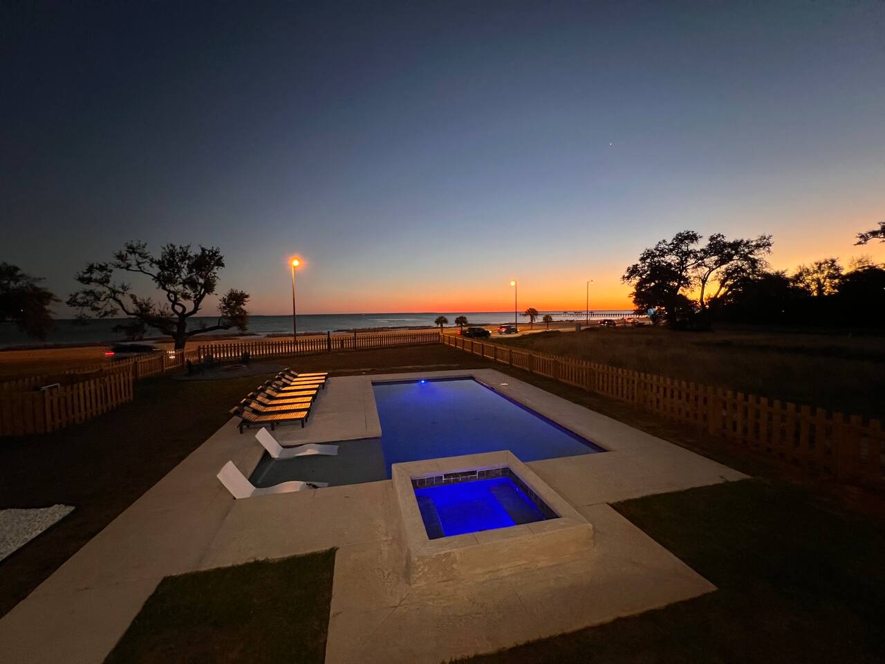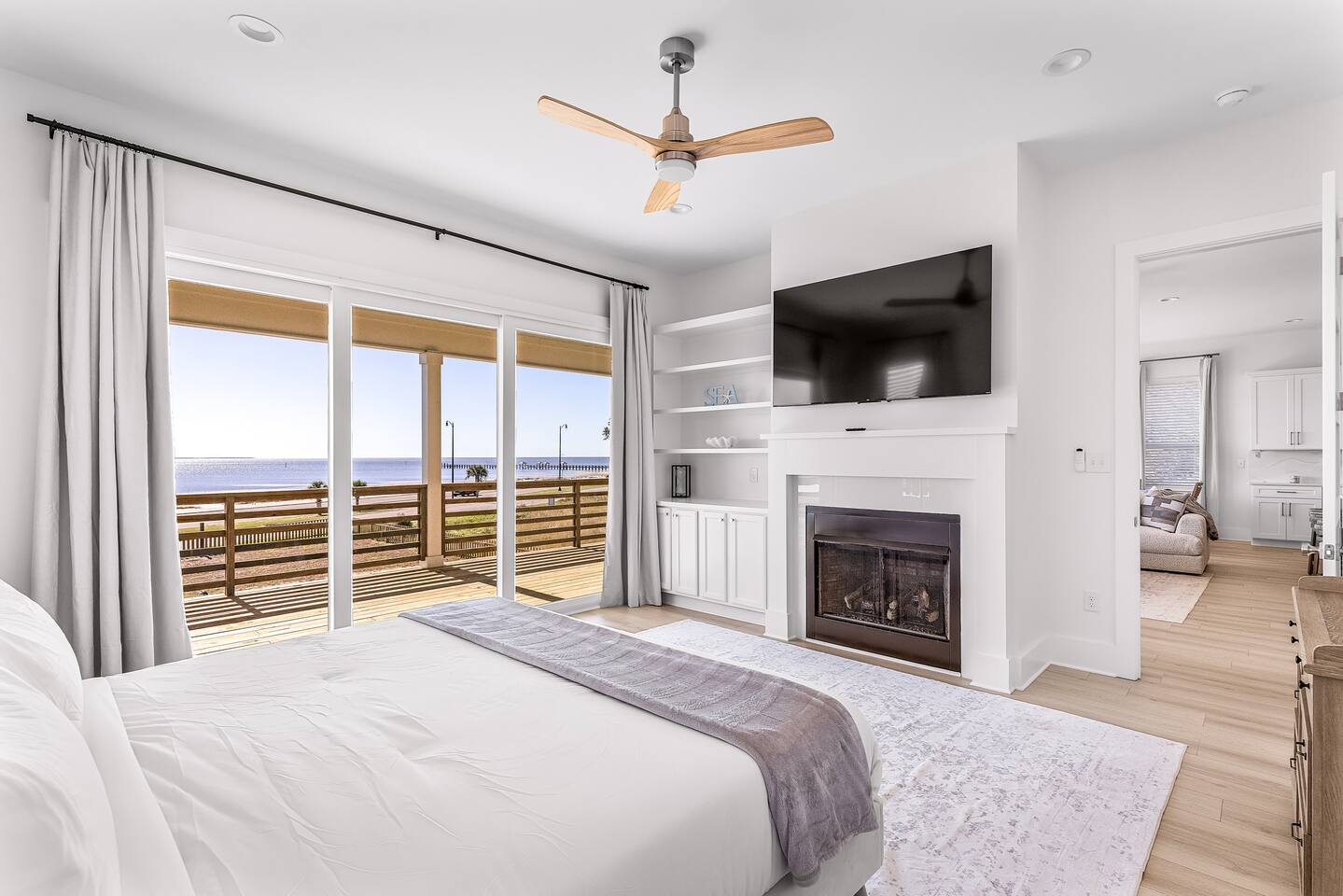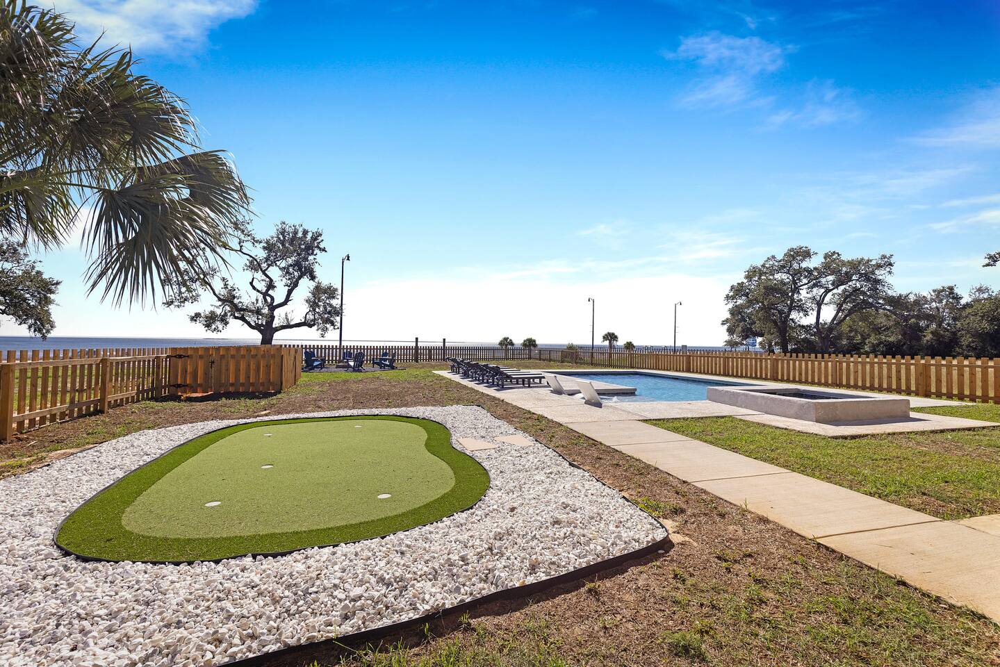 Nestled along the pristine coastline, this exquisite 5-bedroom, 3.5-bathroom home offers a blend of comfort, sophistication, and natural beauty. With expansive direct water and beach views, this sanctuary is the ideal getaway for those seeking relaxation and elegance. Step inside to an open-concept living space featuring high-end finishes, modern amenities, and large windows that flood the home with natural light, breathtaking views and a cozy fireplace for cooler temps. The gourmet kitchen is a chef’s dream, fully equipped with a gas stove, double ovens, and a spacious island, perfect for entertaining. The luxurious primary suite provides the ultimate in relaxation with a King Bed, access to the balcony overlooking the pool and ocean, a cozy fireplace, an en-suite spa-like bathroom, and a walk-in closet. Four additional beautifully appointed bedrooms offer lots of space and serene décor for family or guests. 2 of the additional bedrooms have king beds and water views. The middle upstairs bedroom has a queen bed, also with water views, and the bunk room has 2 full size beds on bottom with 2 twins on top making it possible to host 14 guests comfortably. Outside, unwind in your beach view oasis. Take a dip in the sparkling pool (which can be heated with proper notice), soak in the heated spa, or simply enjoy the stunning water views from the expansive patio. For golf lovers, practice your swing on the home’s personal putting green, and as evening falls, gather around the fire pit for a cozy, unforgettable experience. Enjoy a meal outdoors with an outdoor dining table with gorgeous views and a bar seating area with an outdoor television with an outdoor couch/seating area as well. Whether you’re looking to relax, entertain, or explore the nearby beaches, this luxurious home offers the perfect blend of serenity and sophistication for your next escape.