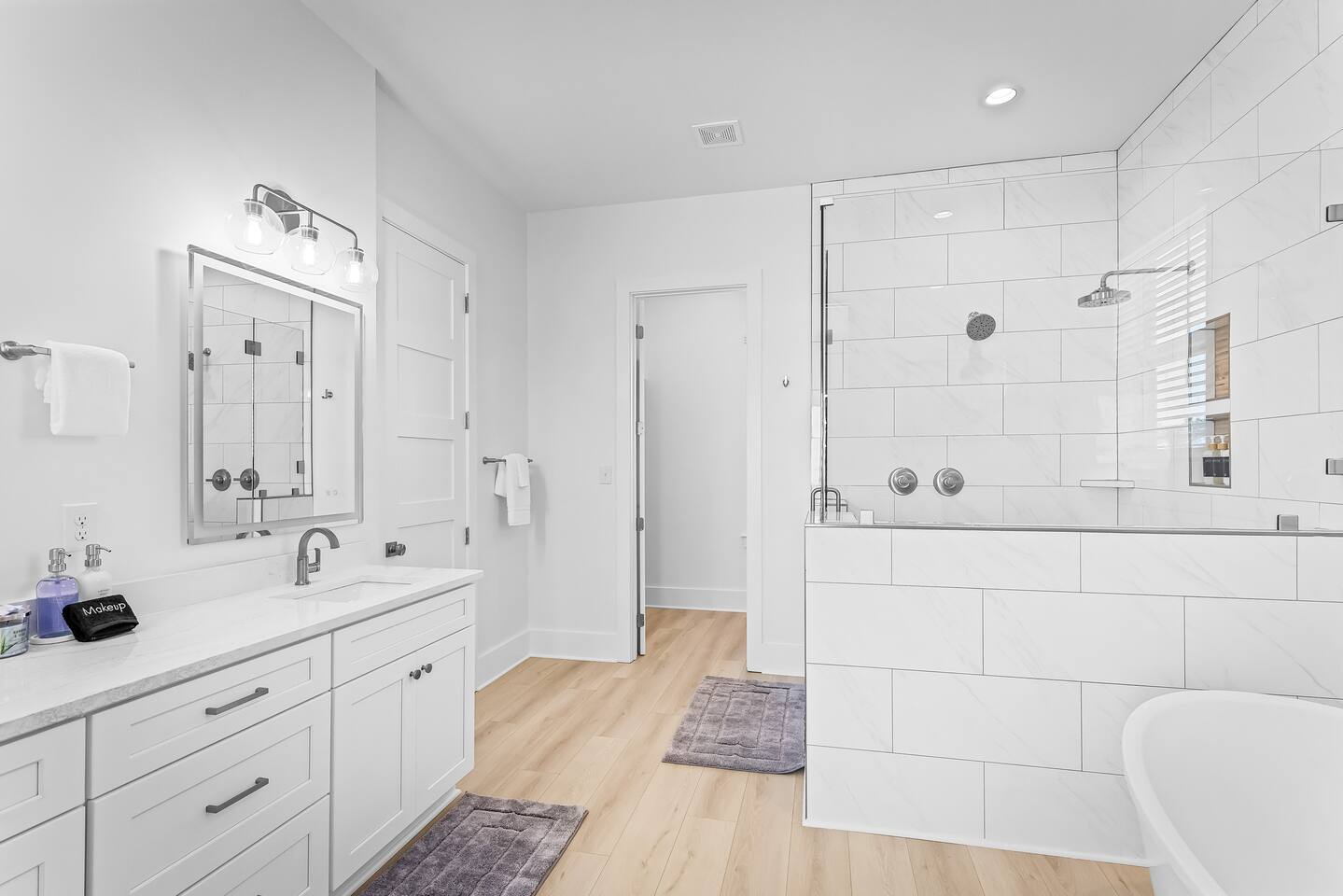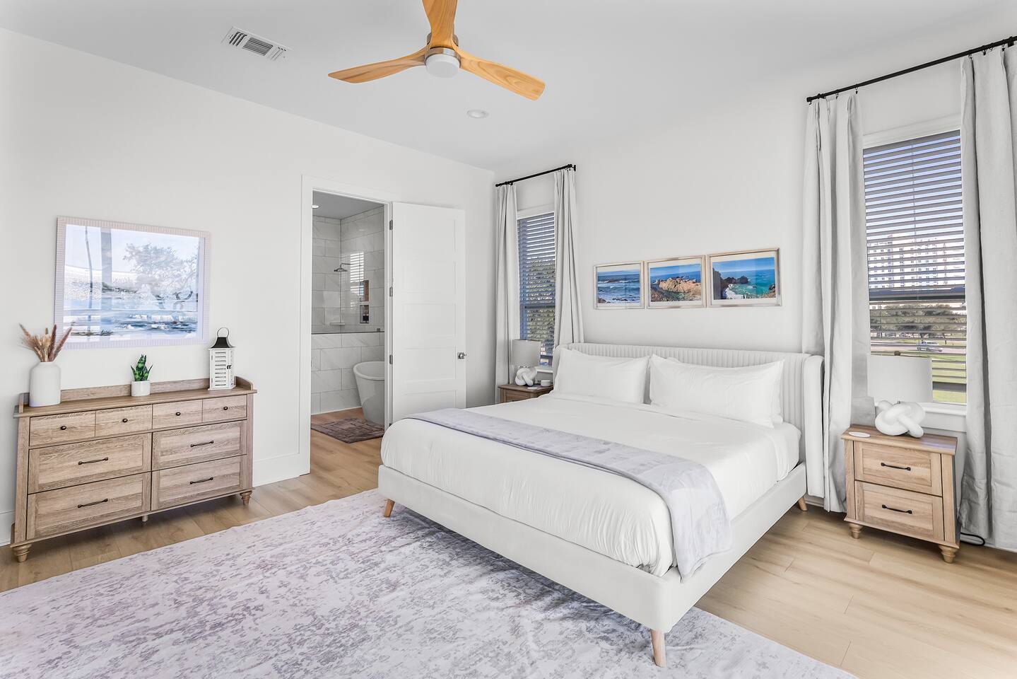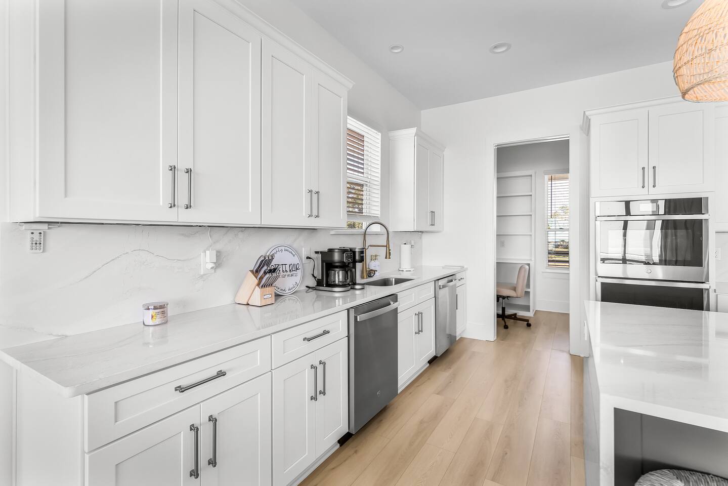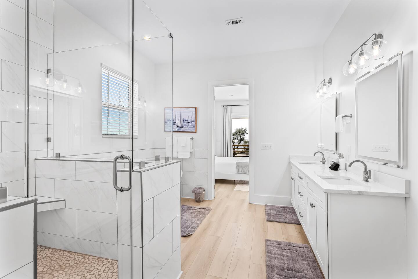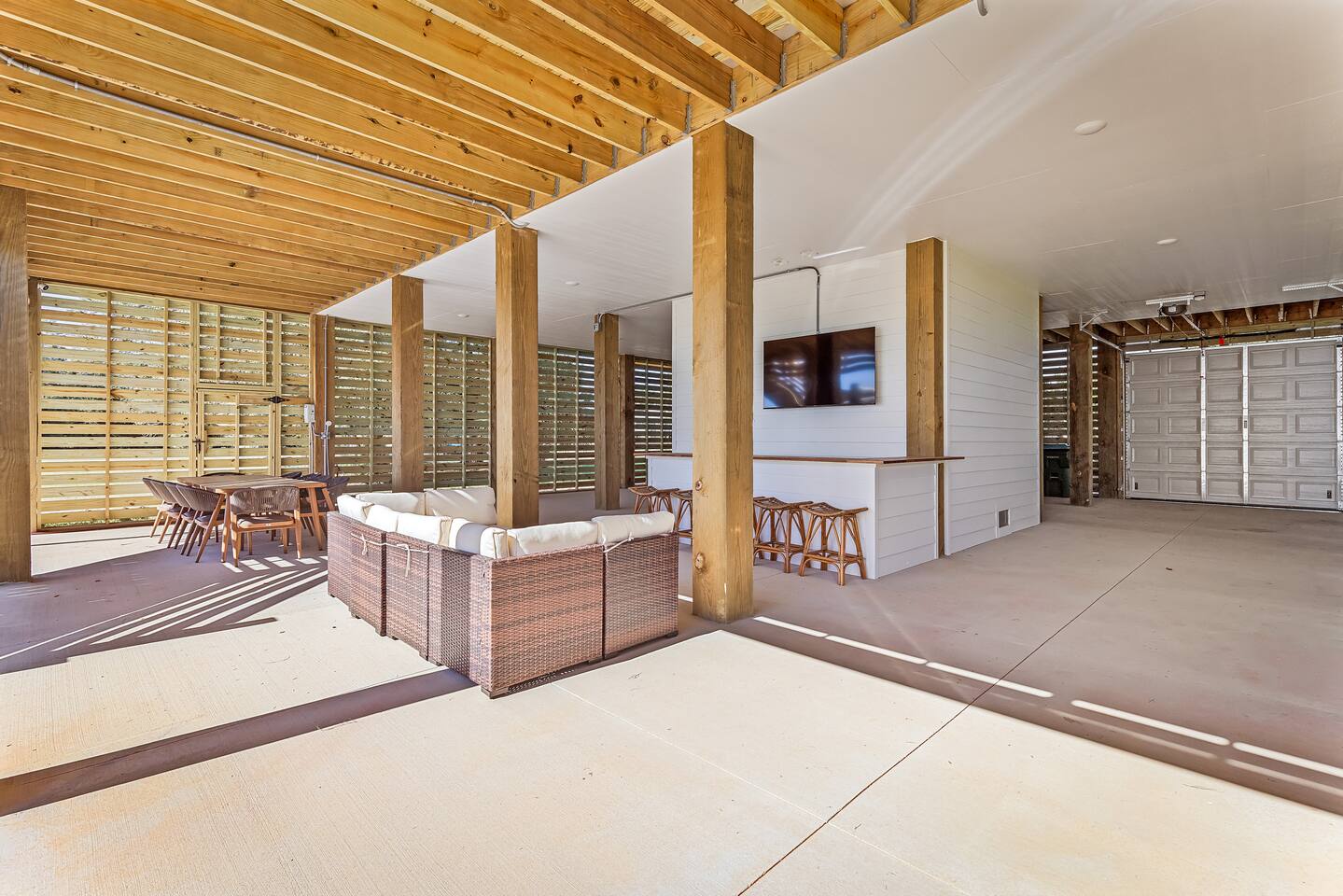 Please enter through the front door facing 8th Street where the driveway is located. Once you have access to the property, you may open the garage doors and bring your things up the stairs underneath the home for greater ease. There is an owner's closet upstairs that will remain locked, and attic doors (they are in 2 of the upstairs closets) which will also remain locked. There is a coded lock underneath the home where the beach wagon and chairs will be located. You will be given access codes for the property on auto message 15 min prior to check in time. We do NOT send codes earlier than check in time to allow the cleaners the entire window of time to clean up until your arrival as we frequently have same day check in/check outs. With such a large property, the cleaners must be allowed the entire time frame and early check in must be approved well in advance and will only be allowed if we do not have a same day check-in.