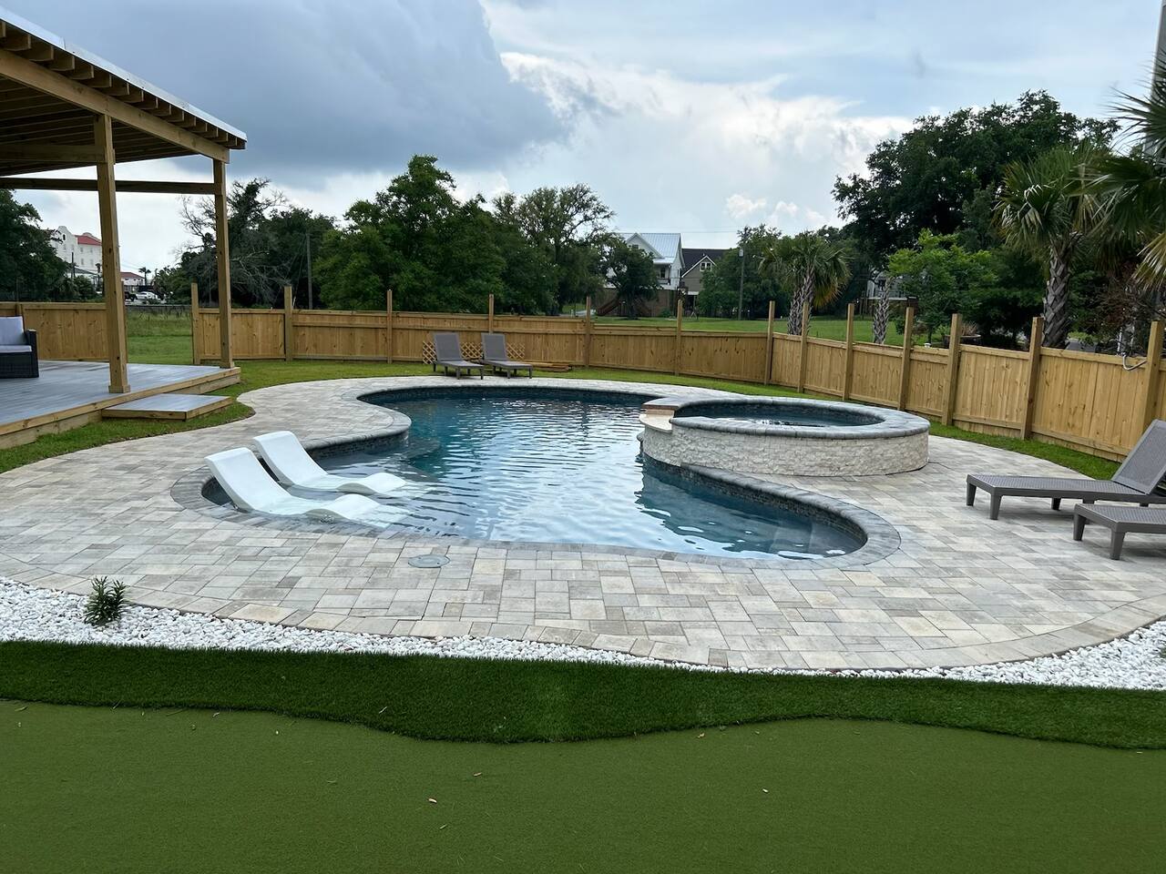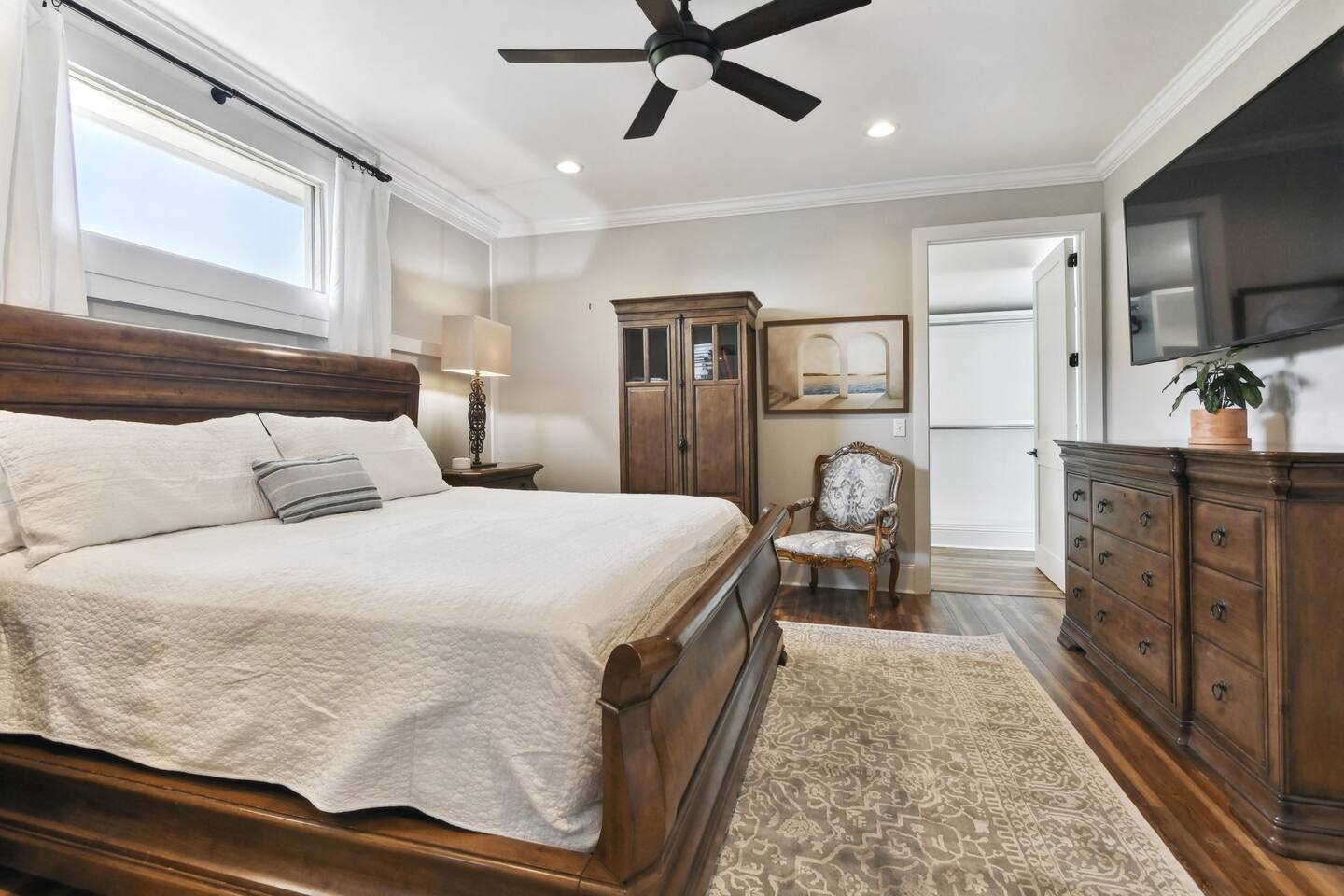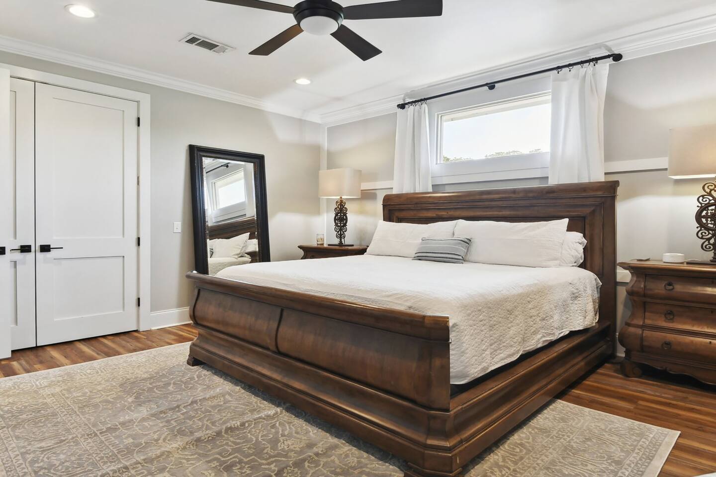 Enjoy easy access to everything in this NOLA style 4 BR, 4 bth just 2 blocks to the beach on a quiet cul-de-sac w/ parking for up to 5 vehicles. Each bedroom has an en-suite bathroom, tv, and walk in closet. Heated pool and spa available all year. Work space in laundry area with a tv you can usb connect to your computer for dual monitors or a quiet space to work. 2 large porches for enjoying coastal breezes…80’s style game room! Perfect place to unwind with pool and spa.