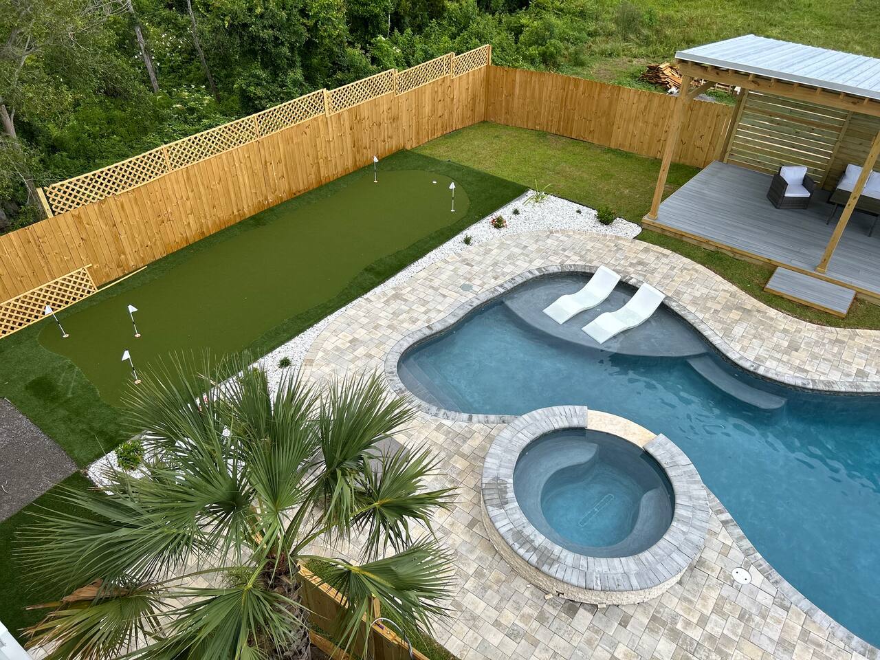 This is a 3 story house with a large lot next to it. The pool and spa are finished. The fence and deck should be done by April 20, 2024. The house has 4 bedrooms with 4 ensuite bathrooms. There are noise machines provided in each room to help with a good night’s sleep.