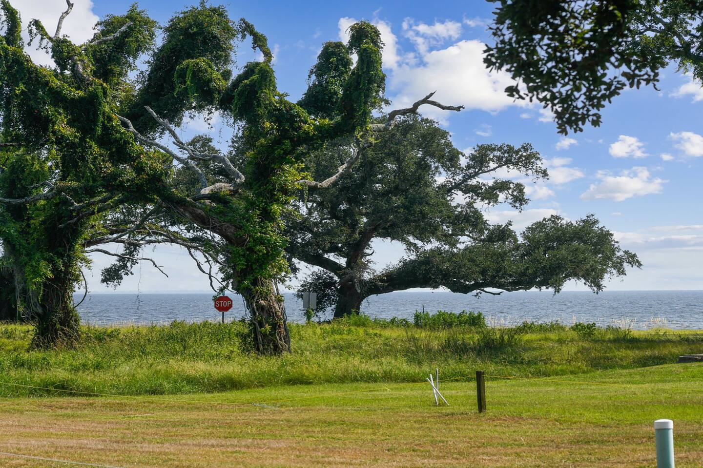 Beautiful neighborhood surrounded by new construction homes and beautiful oak trees and water views