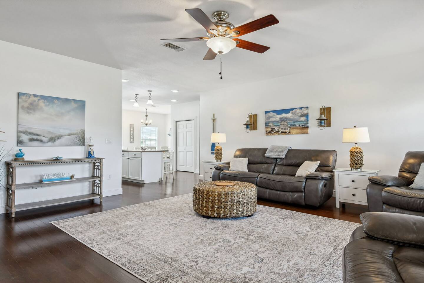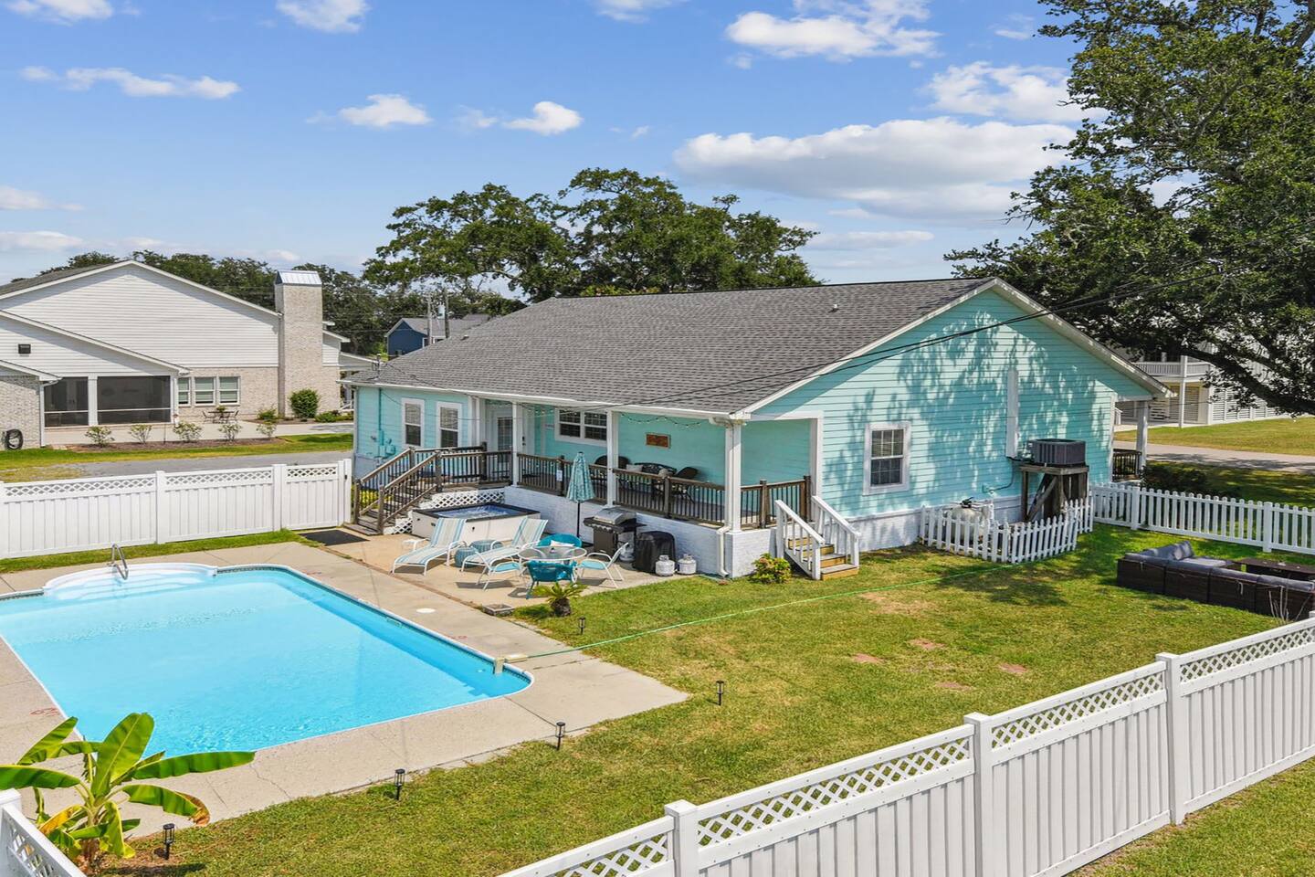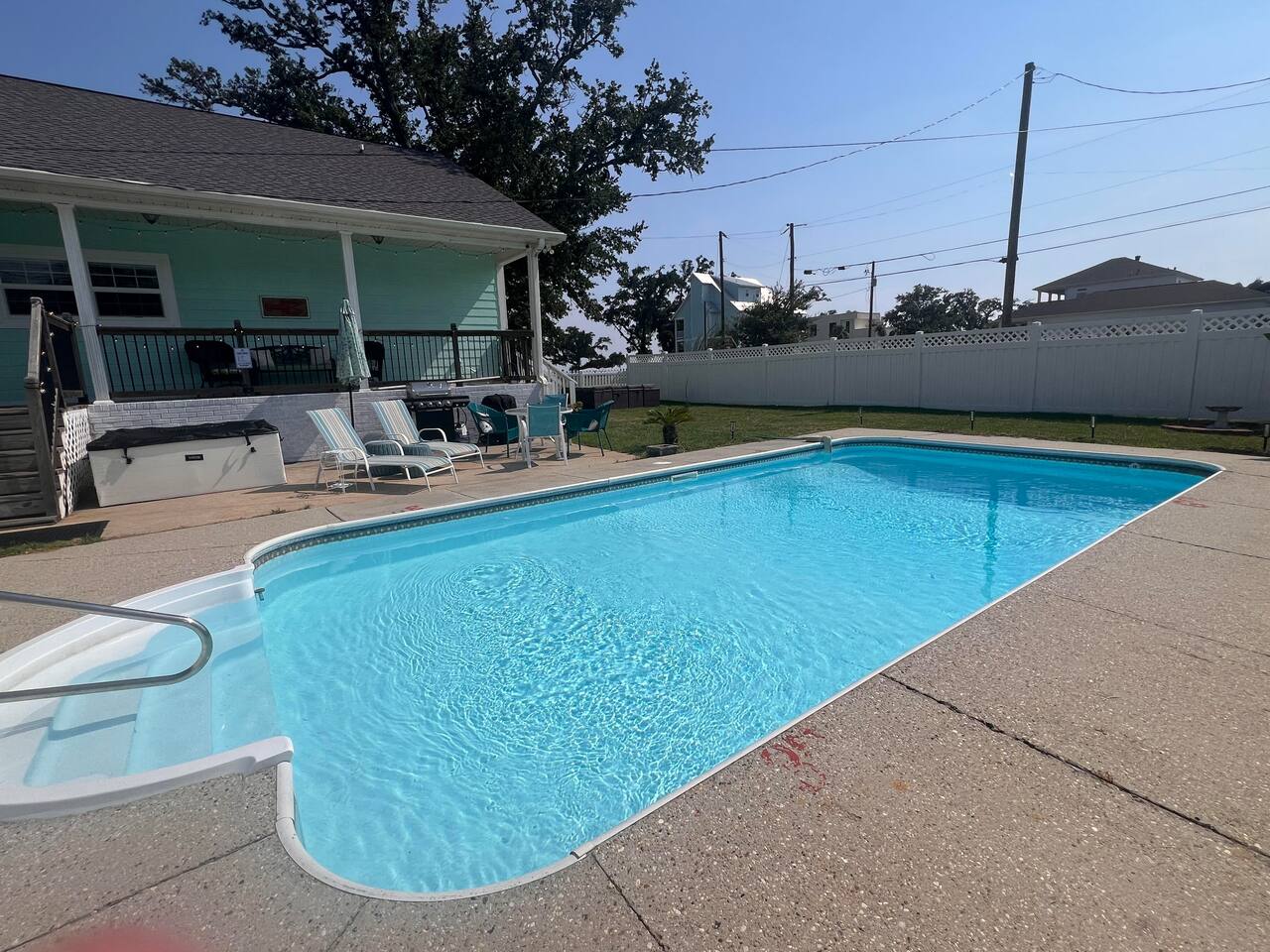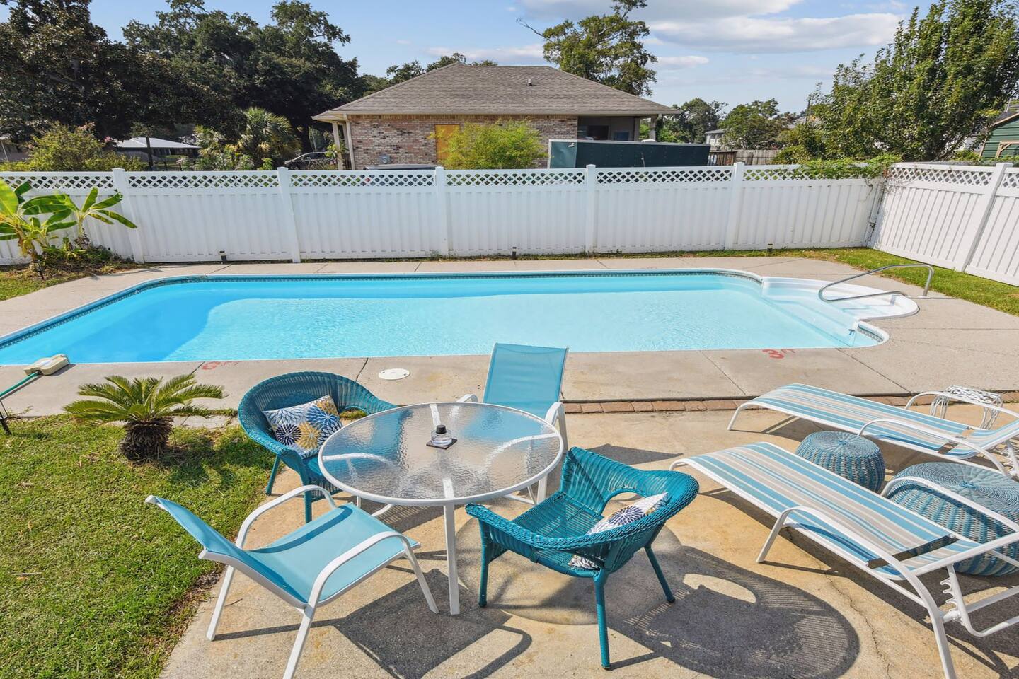Indulge in a wonderful beach escape at this adorable home with waterfront views just over a block from the sandy shores. Unwind in the private pool/spa set amidst your own tropical oasis. Ideal for families or groups seeking a rejuvenating retreat. The split plan design ensures privacy, with the kitchen and living room as the heart of the home. With tons of parking available, you can easily accommodate your entire group without hassle. Secure your spot now for an amazing beach vacation!