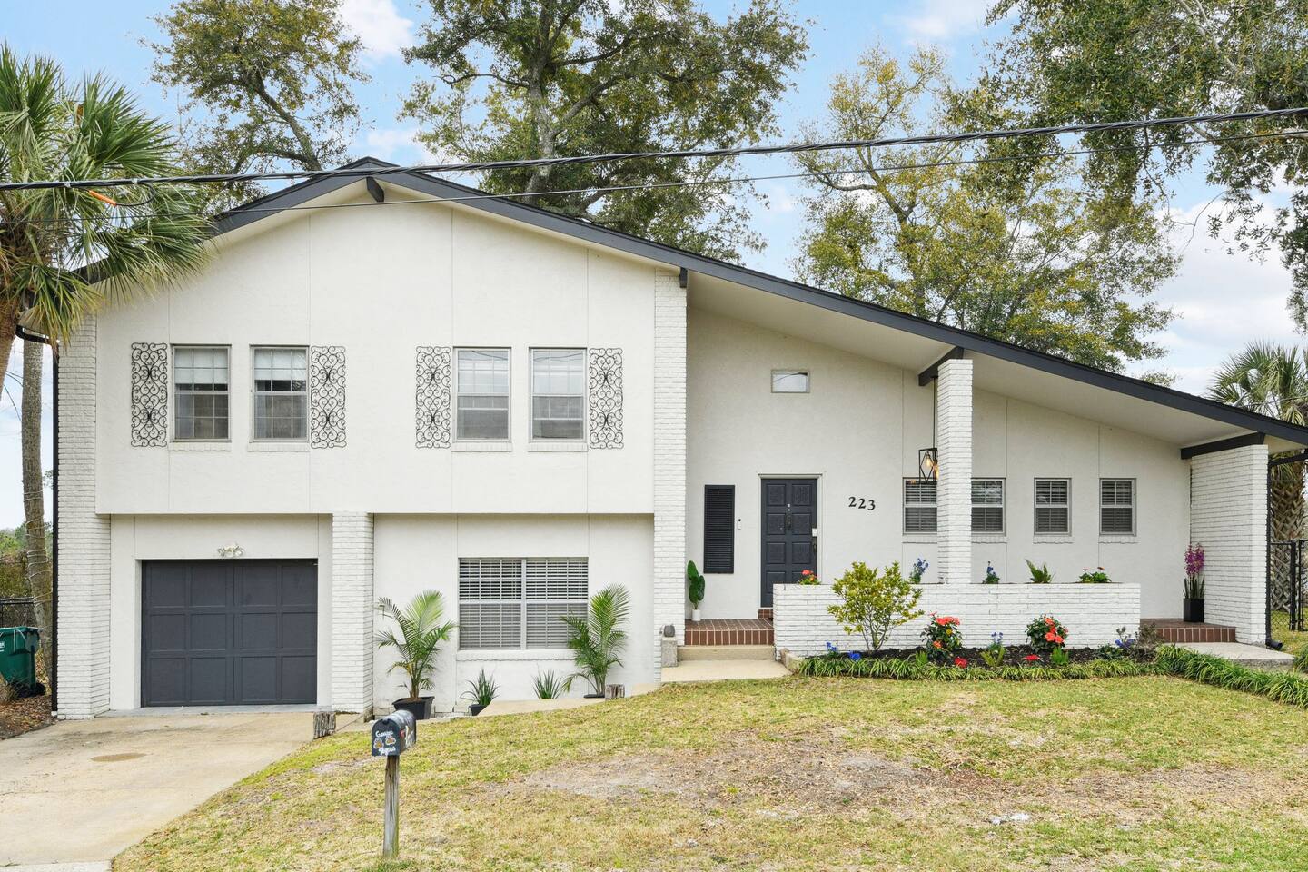 There is a small one car garage for parking that you must open from the inside. There is a space for one car in the driveway. You may not street park at this residence as there is limited street space. You may park where the curb ends on the grass in front of the black fence that runs along Venetian Gardens. Please see photos for parking description.