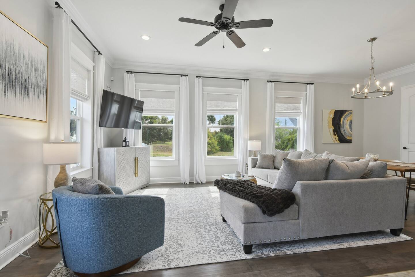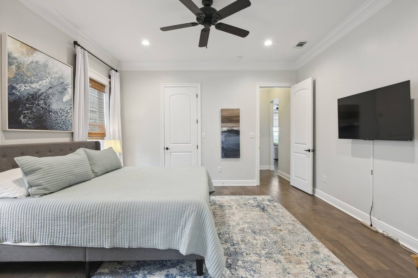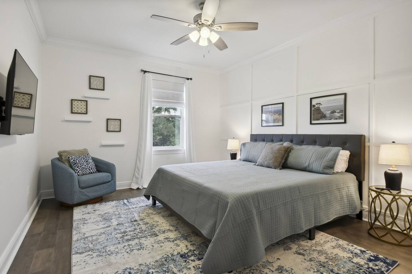 Relax with the family at this peaceful home with porches upstairs and down, you can enjoy coastal breezes overlooking the ocean and gorgeous oaks in a beautiful new construction area only a 1-2 min drive from downtown restaurants, shopping, and attractions! This 3 bedroom home has spacious bedrooms, with televisions, ceiling fans, comfortable beds, and lovely decor! 2 car garage with parking for 4 and extra street parking. Walkable to the beach with beautiful finishes and easy access to downtown
